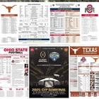 History! For sale, the game issued Flipcard and team program notes for the Texas vs Ohio State College Football Playoff, Round Three Semifinal Game, at the Cotton Bowl. Friday, January 10, 2025. Only given to media and broadcast for the game. GAME: CFP - Round Three - Semifinal - Cotton Bowl - Texas vs Ohio State DATE: January 10, 2025 TEAMS: Ohio State vs Texas STADIUM: AT&T Stadium LOCATION: Arlington, Texas What You Get: 1. (1) - Game Media Flipcard - Ohio State vs Texas - double sided 2. (1) Texas Program Media Insert - 8.5x11" - 1-pages 3. (1) Ohio State Program Media Insert - 8.5x11" - 1-page 4. (1) Cotton Bowl Program Media Insert - 8.5x11" - 1-page 5. (1) Rigid Plastic protector - 11x17"