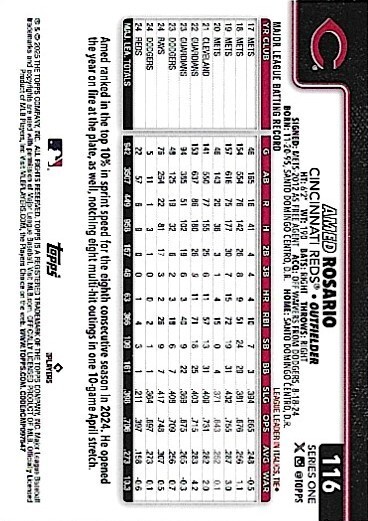 Delve into the world of baseball memorabilia with the 2025 Topps #116 Amed Rosario Cincinnati Reds card. This sports trading card captures the essence of the season, featuring the talented shortstop in his prime. It's a must-have for fans and collectors alike, showcasing the player's skill and the Reds' spirit. Crafted by Topps, a trusted name in sports collectibles, this card is part of the esteemed 2025 series. With its vivid imagery and detailed design, it pays homage to the MLB and the sport's rich history. Add this piece to your collection and own a snapshot of baseball legacy.