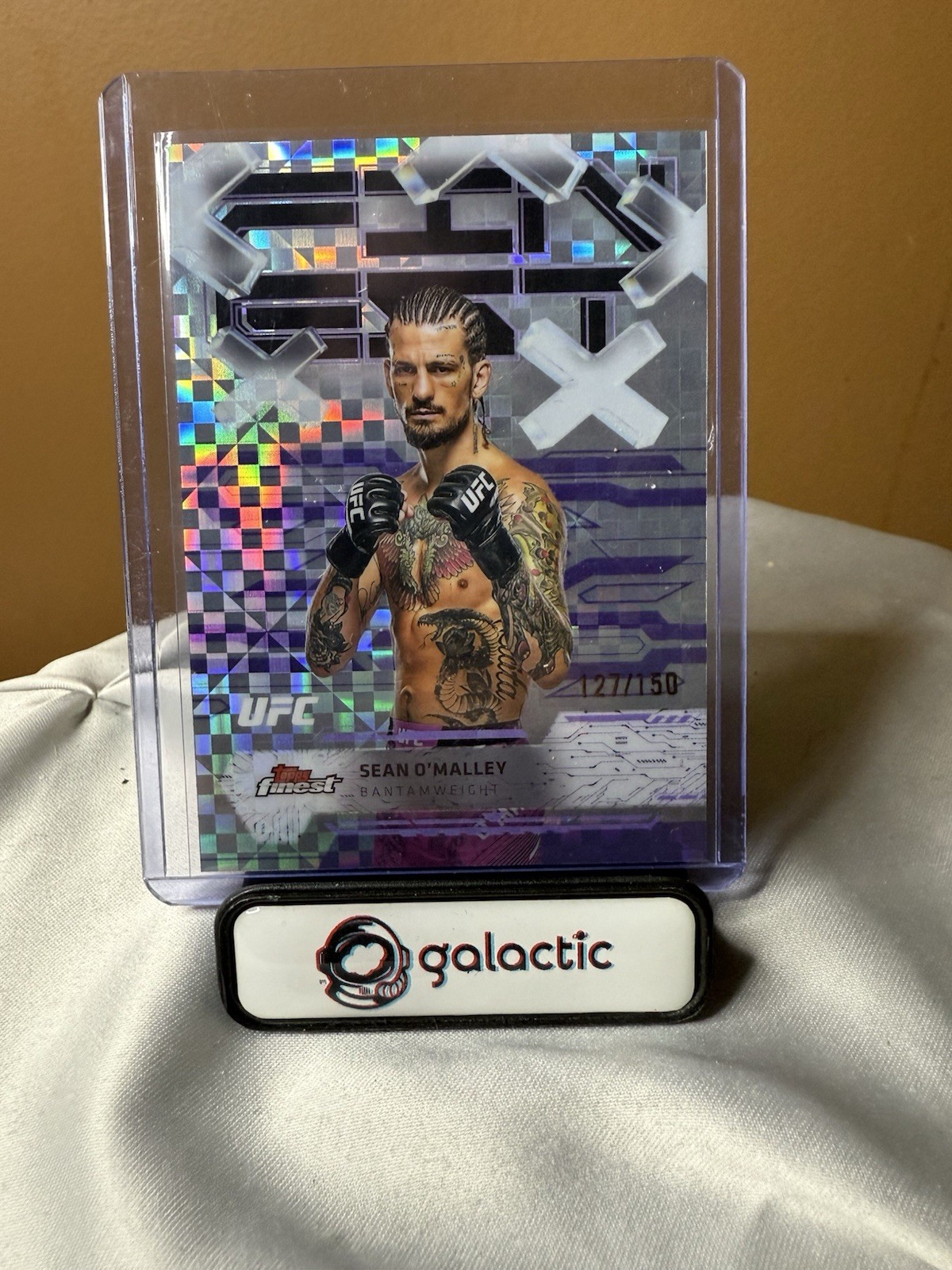 The product is a lot of 2025 Topps Finest UFC Sean O’Malley autographed ,insert , and numbered cards, featuring the Ultimate Fighting Championship (UFC) athlete. These standard-sized sports trading cards are made of card stock and are original, not a reprint. Each card is numbered and authenticated by Topps, the manufacturer. The cards are in English and showcase the dynamic skills of Sean O’Malley in the world of Mixed Martial Arts (MMA). A must-have for any UFC fan or trading card collector.