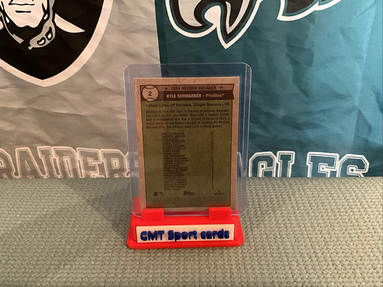 The 2025 Topps Heritage trading card featuring Kyle Schwarber is a chrome parallel variety card from the Major League Baseball (MLB) World Series. Manufactured by Topps, this original card is made of card stock with a thickness of 20 Pt. It is part of the 2025 Topps Heritage set and showcases the player in his Philadelphia Phillies uniform, making it a valuable addition to any baseball card collection.