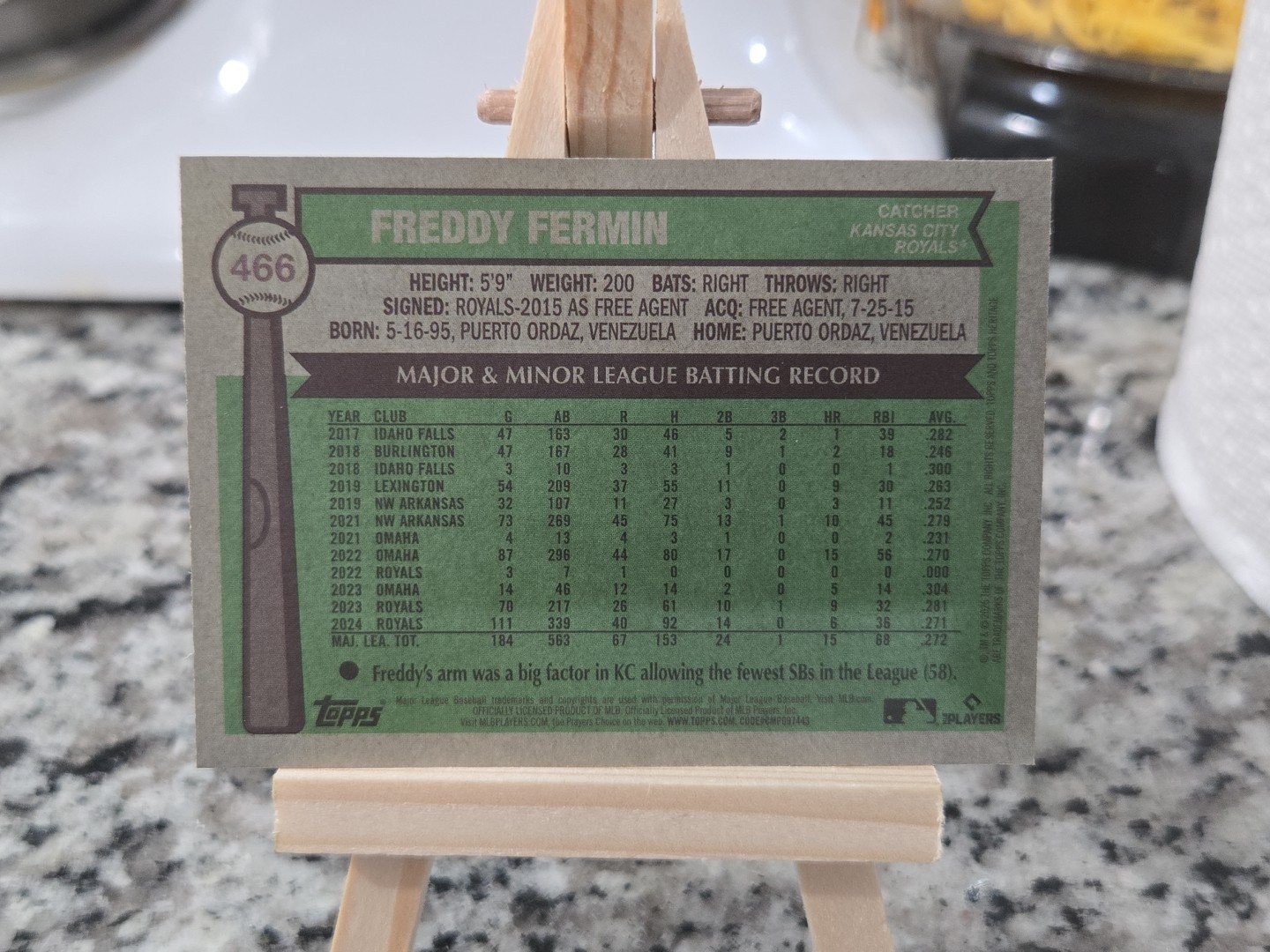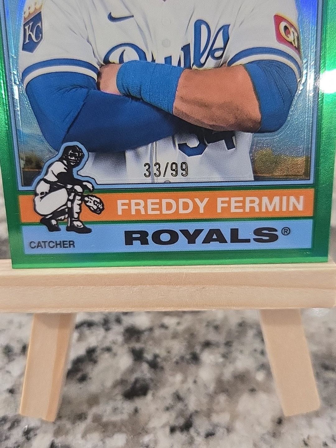 This card is a must-have for collectors! The vibrant green border makes Freddy Fermin’s SP pop, and the /99 rarity adds serious value. Arrived well-protected with no flaws—just as described. The photos accurately showed condition, and the card itself is pristine. Perfect for Royals fans or Heritage enthusiasts!