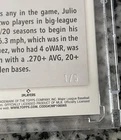 Absolutely stunning card! The red foil pops and makes Julio RodrÃguez look electric. As a 1/5 SSP, it’s a must-have for serious collectors—pack-fresh condition and instantly sleeved for protection. This is a grail-level pull that will elevate any Mariners or J-Rod PC. Rare, eye-catching, and a future gem!