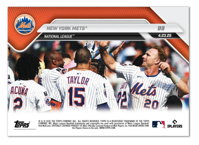 You are bidding on the item listed in the title: 2025 Topps Now New York Mets #99 MLB's Best Team Walk-Off Win Alonso IN HAND Please Note –This is IN HAND! I will have it shipped out in 1-3 Business days! 1 day will be the overwhelmingly majority of orders but occasionally I may be gone for an extra day! Please Note – I will be buying most Topps Now products in 2025 and will be listing the cards daily. Make sure you follow along to miss any new drops! Shipping on items that sell for under $10 – will be via eBay Standard Envelope. Card placed in a penny sleeve, then placed inside of a Card Saver. Card saver will be taped shut with a small piece of painter’s tape – the item will then be tucked inside of a folded piece of paper and placed into a plain white envelope – if this is not your preferred method, please consider buying from someone else. Shipping on items that sell for $10 to $20 will be via eBay Standard Envelope. Card placed into penny sleeve, into a top loader, sealed shut with a team bag. Card then placed inside of 6x4 cardboard thank you card and properly sized envelope to ship. If this is not your preferred method, please consider buying from someone else. Cards that sell for over $20 will be shipped via double bubble mailer! Any additional questions please message me! Please don't let my low feedback sway you from purchasing from me! I have another account with over 20,000 feedback - I'm starting this account strategically for presale items only!