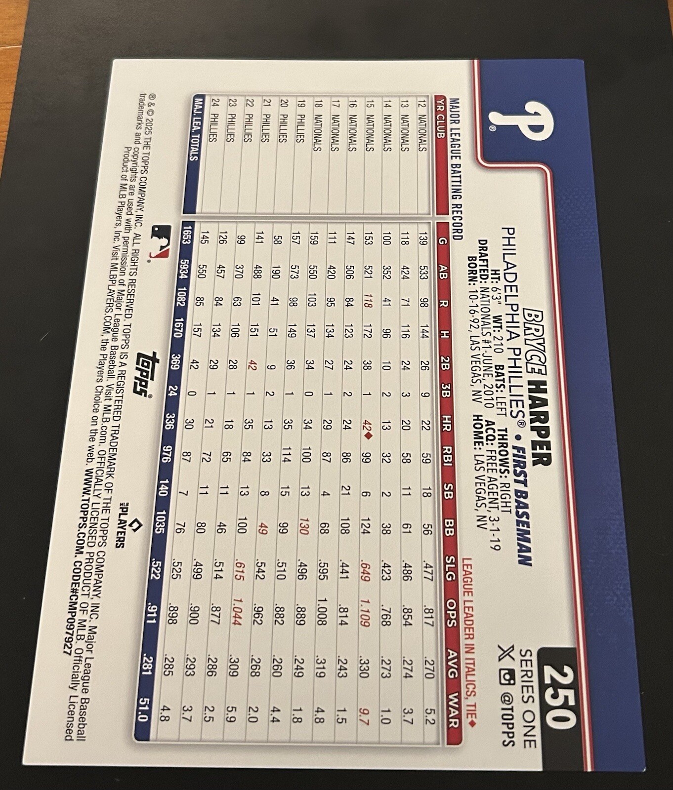2025 Topps Series 1 Bryce Harper Super Box Oversized Card Phillies #250