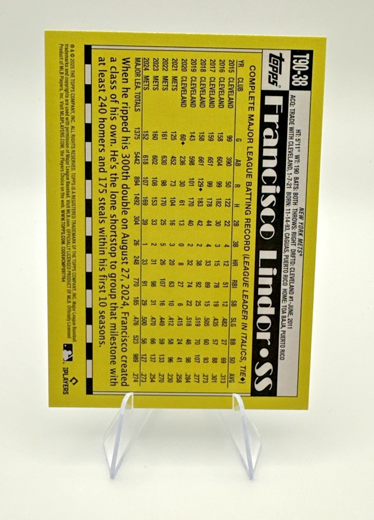 2025 Topps Series 1 #T90-38 - Francisco Lindor 1990 35th Anniversary New York Mets Ships in Penny Sleeve and Top Loader