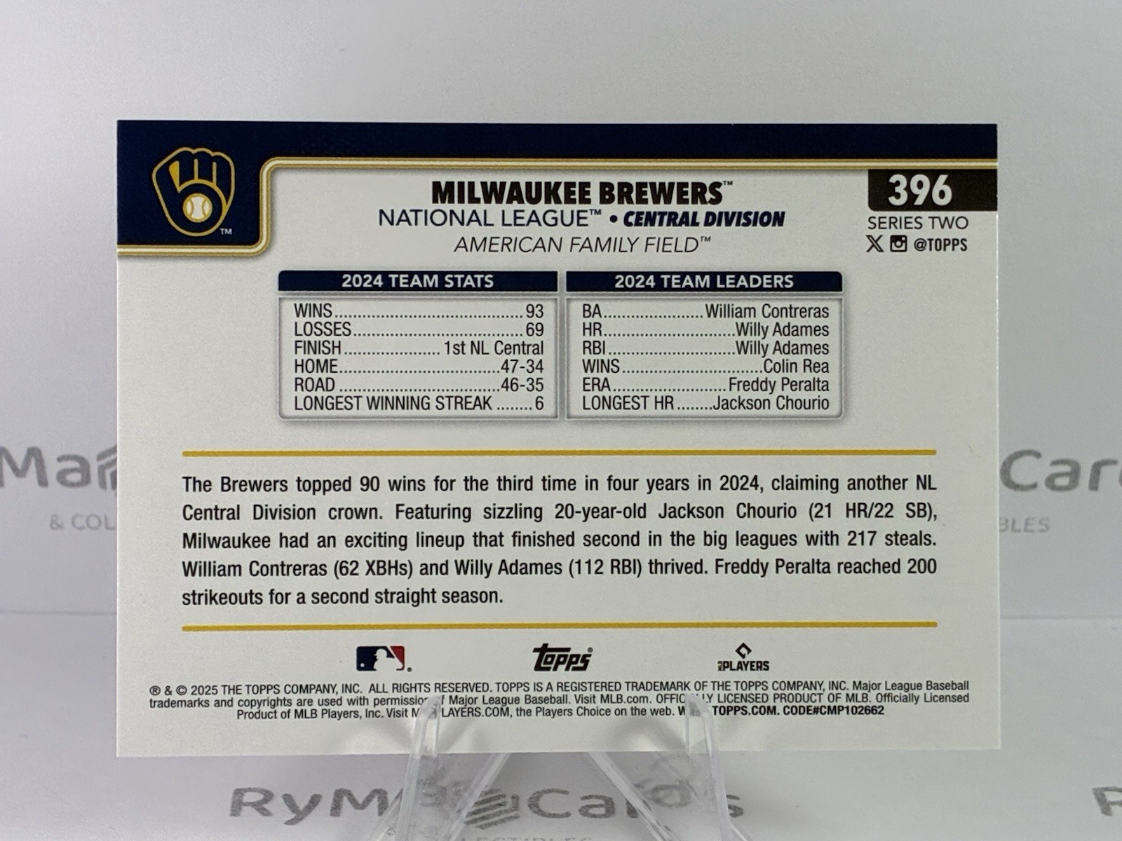 This 2025 Topps Series 2 card features the Milwaukee Brewers, Holiday parallel. Please contact me if you have any questions. Combined shipping available