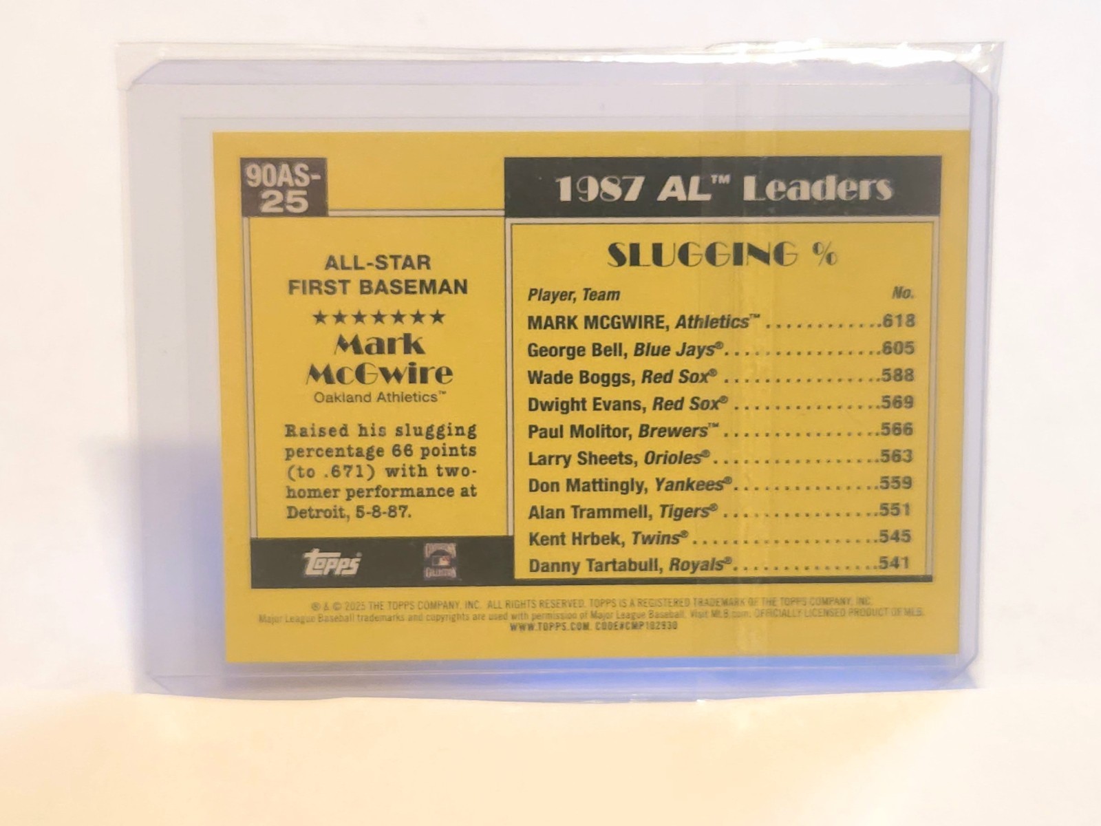 The 2025 Topps Series 2 Black Crackle 35th Anniversary Mark McGwire #90AS-25 trading card is a sought-after collectible featuring the iconic baseball player in his Oakland Athletics uniform. This original card is crafted from high-quality card stock and is part of an special insert set, making it a valuable addition to any sports trading card collection. Authenticated by Topps, this card offers a unique piece of MLB history from the 35th anniversary celebration, perfect for fans of Mark McGwire and baseball memorabilia enthusiasts.