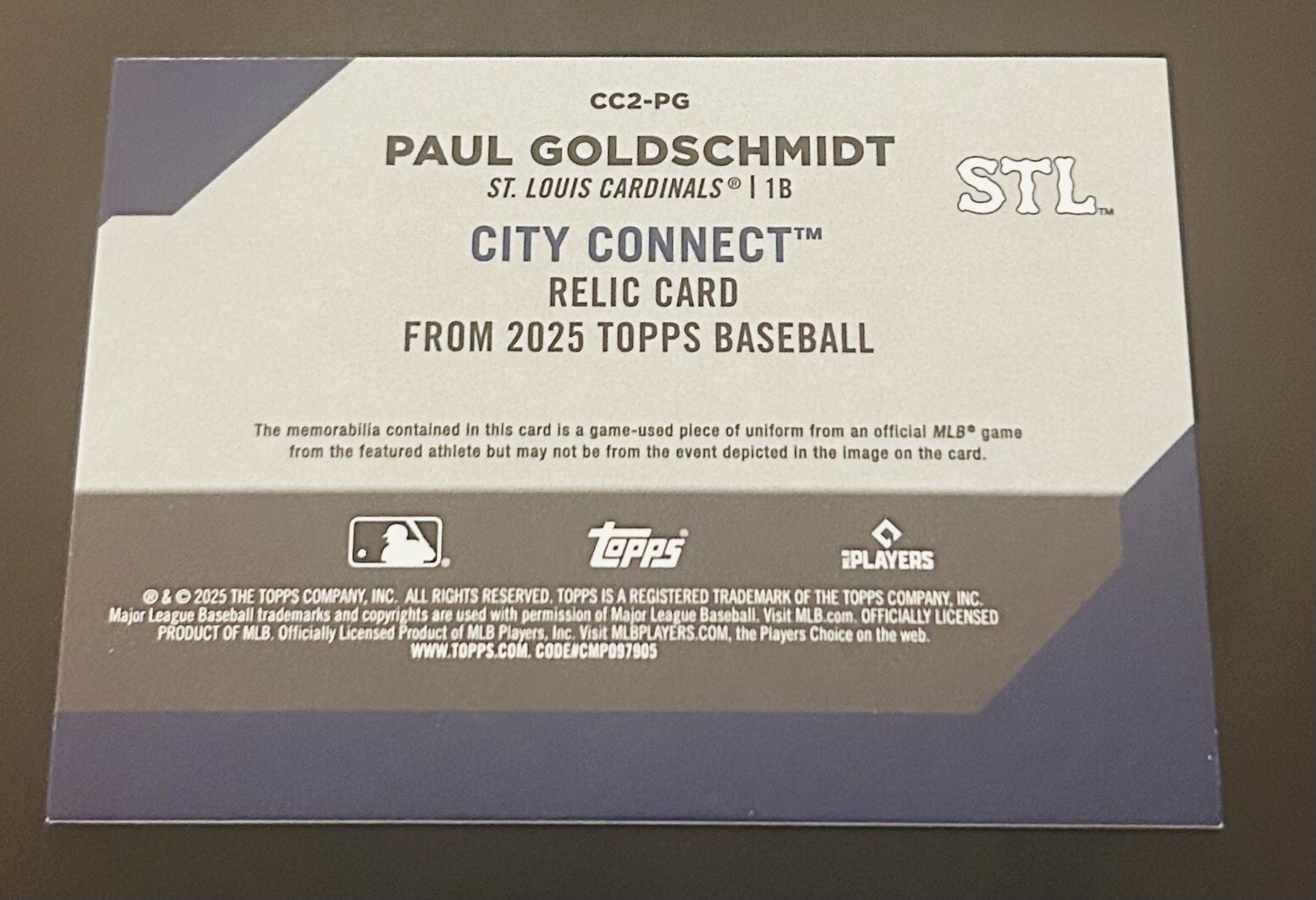 2025 Topps Series 2 Paul Goldschmidt City Connect Jersey Relic #CC2-PG Cardinals