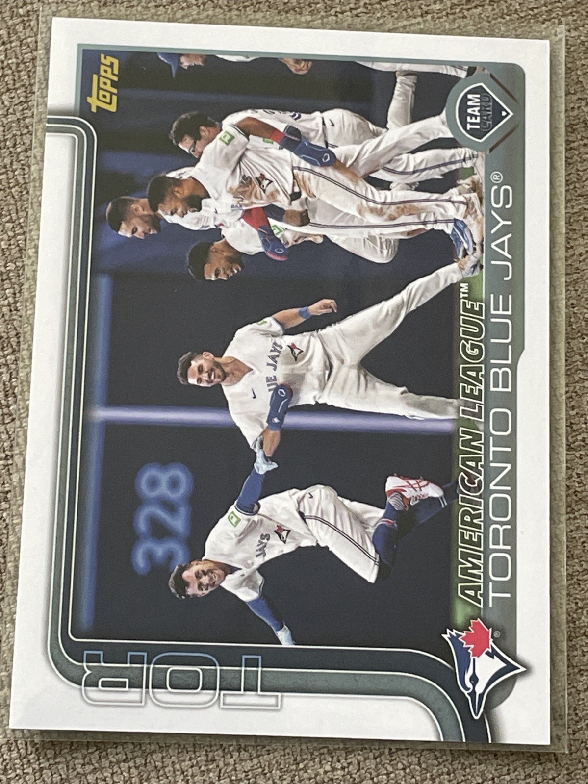 The product is a highly coveted 2025 Topps Series 2 Toronto Blue Jays Team Card featuring a Golden Mirror Image SSP. This rare sports trading card is part of the Major League Baseball league and is manufactured by Topps. With its Short Print and parallel variety features, this card is a must-have for any baseball card collector looking to add a unique piece to their collection. The Toronto Blue Jays team card is a standout addition to any baseball card collection, especially for fans of the team and collectors of limited edition cards.