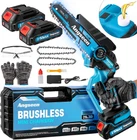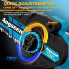 1000W Powerful Brushless Motor: Angseen mini chainsaw is equipped with a 1000W powerful brushless motor, with a cutting speed of up to 42FT/S. It can effortlessly cut through 6-inch wood in just 6 seconds, representing a 30% increase in efficiency compared to traditional pure copper motors with brushes. Additionally, due to the brushless motor’s fewer moving parts and reduced friction, the electric chainsaw cordless operates more stably and safely, without overheating or burning. Its lifespan is also extended by 5 to 7 years compared to pure copper motors Rechargeable Large Capacity Batteries: Angseen mini chain saw battery powered comes with 2x 21V 2000mAh removable & rechargeable lithium batteries, providing a runtime of up to 70 to 90 minutes. This ensures uninterrupted operation and eliminates worries about running out of power. The batteries charge fully in just 1.5 hours, ensuring convenience and speed. For best performance, fully charge the batteries before extended periods of non-use Manganese Steel Chain with Tool-free Adjustment: This mini chainsaw cordless has a high-quality manganese steel chain, deeply quenched for smooth cutting. It easily cuts through thicker wood that other chainsaws struggle with, making it ideal for tree branches, tree trimming, wood cutting, camping, and gardening. Unlike other mini chainsaw that need a screwdriver for adjustment, ours allows tool-free tension changes by turning the knob on the chainsaw, saving you time with quick and easy operation Automatic Oil Filling System: Our small cordless chainsaw features an automatic lubricating chain system. Simply pour regular motor oil into the oil tank and press the bubble hole to lubricate the chain, reducing wear and ensuring smoother cutting. A single oil filling can last an entire day, eliminating the need to carry a heavy bottle of lubricating oil 5 Safety Designs: 1.Safety Lock: prevents accidental activation (press the safety lock and start button simultaneously to start the chain saw); 2.Safety Baffle: prevents wood from splashing outward; 3.Goggles: provided to protect your eyes from dust and wood chips; 4.Gloves: equipped to protect your hands during operation; 5.Non-slip Textured Handle: ensures a secure grip to prevent accidental slipping while working What you get: 2x 2000mAh batteries, 2x chains (one pre-installed), 1x charger, 1x gloves, 1x goggles, 1x oil bottle (excluding oil), 1x brush, 1x carrying case, 1x user manual Product Description