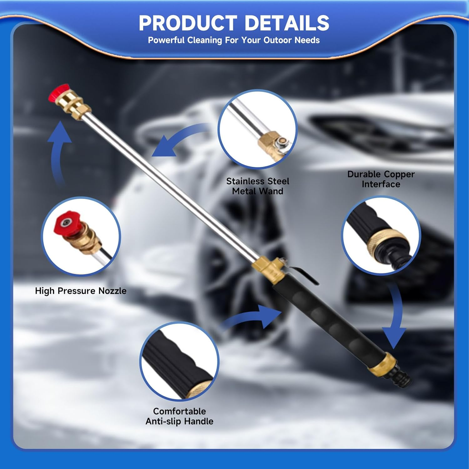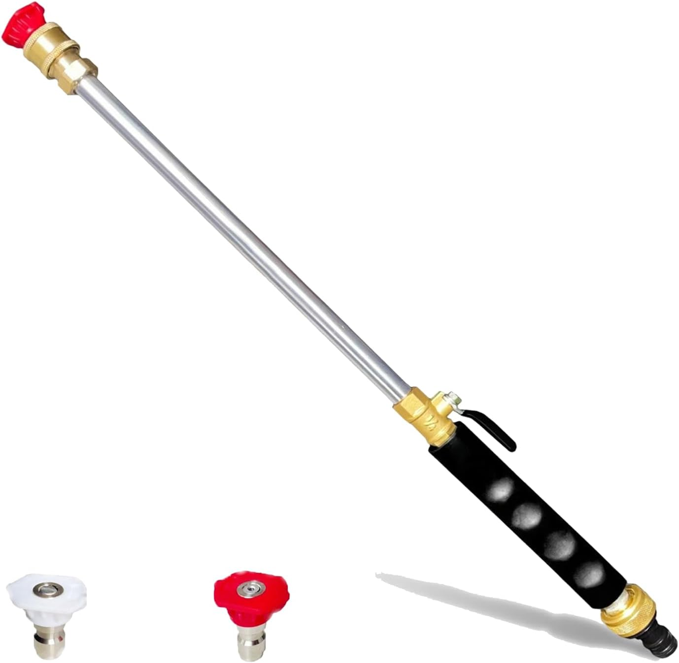 2025 NEW Upgrade Jet Nozzle Power Washer for Garden Hose High Pressure Wand Tool 【User-Friendly Convenience】:Our High-Pressure Garden Hose nozzle is equipped with 3/4-inch standard and 1/2-inch garden hose connectors. There is no need to buy extra adapters, and you can easily connect. The pressure mainly depends on Your Water System Pressure. ( If YOU NEED ADDITIONAL WATER PRESSURE, WE RECOMMEND THAT YOU USE A HYDRAULIC ROD TOGETHER WITH A WATER PUMP OR CAR WASH MACHINE.) 【2 Nozzles For Different Washing Needs 】:Our turbo jet power washer comes with two different jet nozzles:40℃ fan-shaped nozzle and 0℃ straight nozzle. Using a power washer with a fan-shaped nozzle(WHITE) allows for a large area, suitable for garden, patio, pet, car, floor cleaning while the linear jet nozzle(RED) has a stronger impact, which can easily clean dirty car wheels, rims or other corners. You can switch nozzles at will, suitable for various occasions. 【Corrosion and Rust Resistant】: Our hydraulic jet power washer is made of solid copper interfaces, metal rods, thickening switches, and an anti-slip handle, ensuring the anti-corrosion and rust-resistant performance of the product. These materials enable it to resist rust, deformation, and long-term wear and tear. 【Flexible cleaning wand】: Experience effortless cleaning with our Heavy-Duty Metal Hose Nozzle. The high-pressure power washer can easily reach places that are usually difficult to clean like car wheels, brick walls. 【Professional Customer Support】: Aotbuloi offer a good after-sale service. If you have any problem,please feel free to by Email or Store, we will respond within 24hrs. Product Description Item model number 001 Valve Type Needle Valve Batteries Required? No Product Dimensions 19 x 1.3 x 1.3 inches Material Plastic, Metal Item dimensions L x W x H 19 x 1.3 x 1.3 inches Item Weight 12.3 ounces Number of Ports 2 Complimentary Shipping and Easy Returns Need to return something? Enjoy our 30-day hassle-free return policy! Take advantage of free shipping across all 48 contiguous states! Your order will be dispatched within 1-2 business days once payment is confirmed. Your Opinion Matters! Your happiness is our main goal! We welcome your feedback! If you encounter any problems, reach out to us right away, and we’ll be here to help. Explore the Extraordinary! Our collection showcases fascinating products that are sure to capture your attention. What surprises await you? Delve in and discover unique items that enrich your daily life. Don't miss the amazing things we have in store for you!