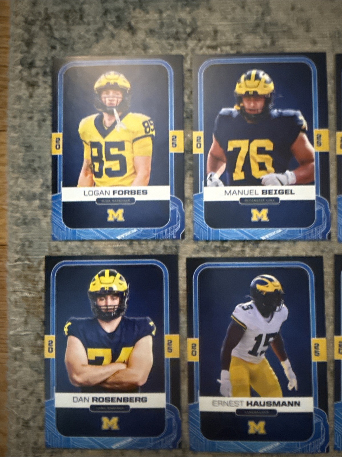 The 2025 Valiant Michigan Football Card Lot consists of a collection of sports trading cards featuring players from the Michigan football team. These cards are likely to be sought after by collectors and fans of the sport, showcasing various players and moments from the team's seasons. With a focus on football, this lot is sure to be a valuable addition to any sports memorabilia collection.