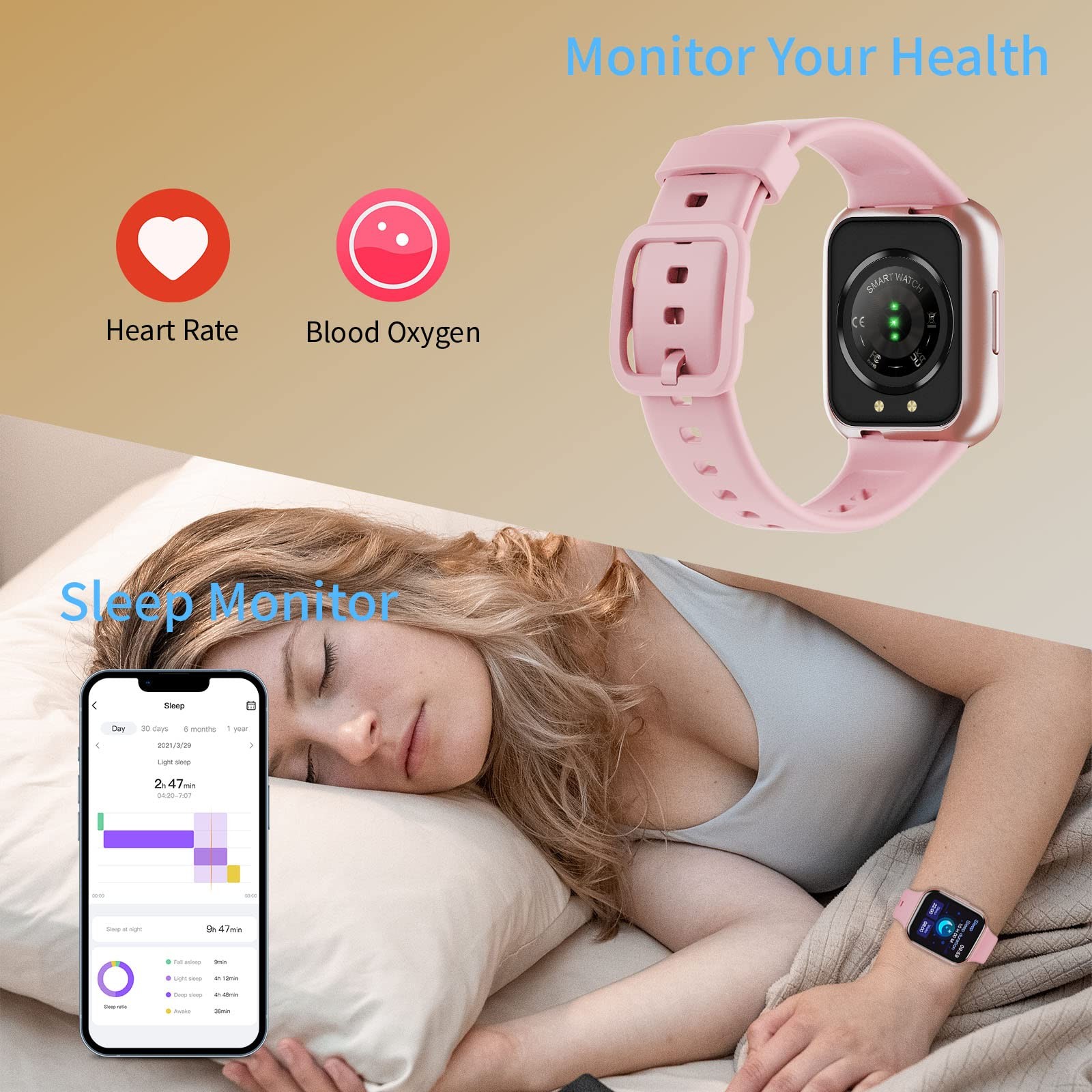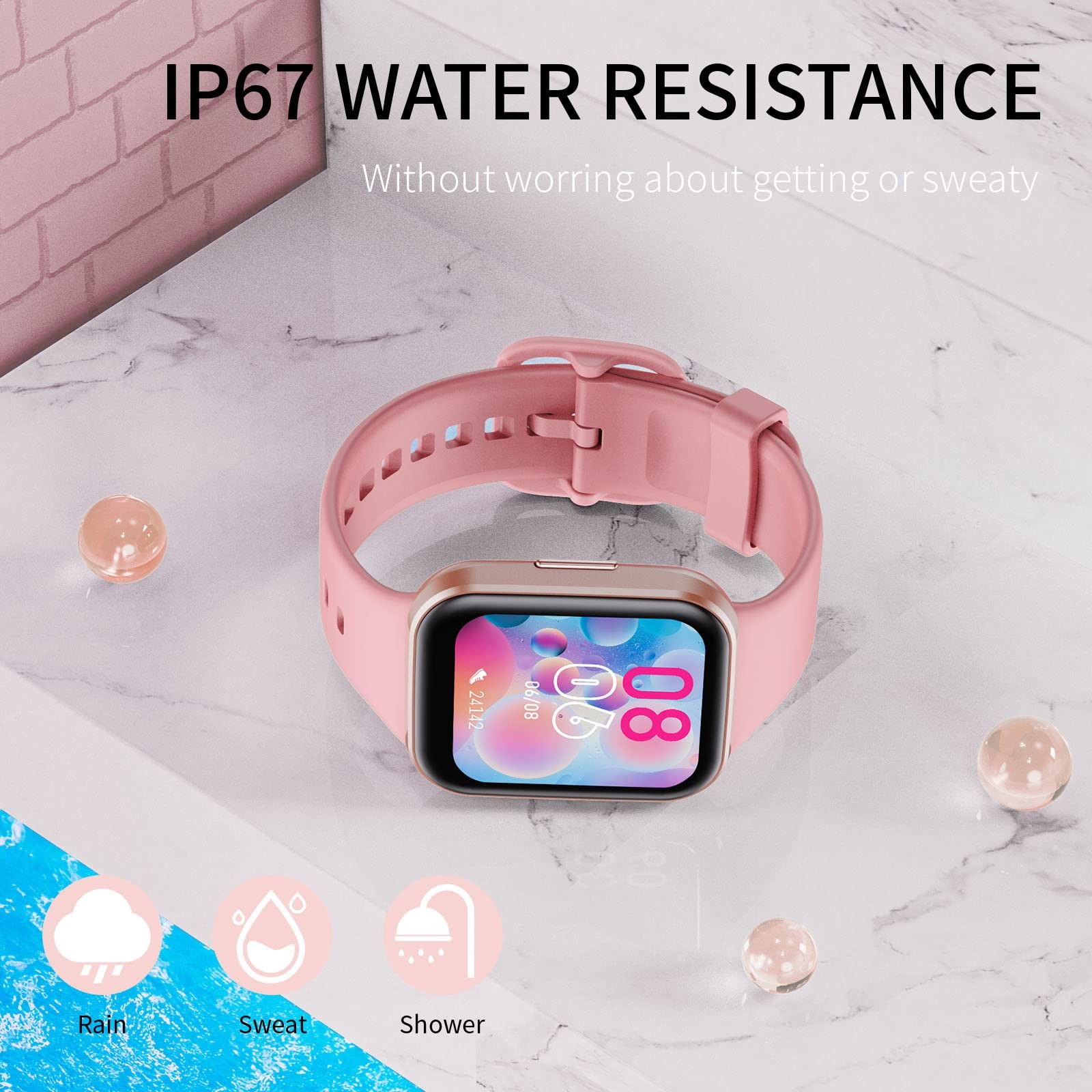 Combining a sleek design with comprehensive wellness tracking, this 1.69β Pink Smart Watch is perfect for active lifestyles. Whether you're working out, monitoring your health, or staying connected on the go, this fitness watch keeps it all in one place β right on your wrist. π Features: π₯οΈ LARGE 1.69β FULL TOUCH HD DISPLAY: Features a bright 240Γ280 resolution screen with intuitive full-touch controls . Scratch-resistant, lightweight, and comfortable for men, women, and teens , the elegant design fits most wrist sizes and offers a modern, stylish look. πβοΈ 25 SPORTS MODES & FITNESS TRACKING: Track your performance in 25 sports like running, cycling, hiking, yoga, treadmill , and more. Automatically records steps, distance, calories burned , and syncs to your phone for easy progress viewing. π 24/7 HEART RATE & SLEEP MONITORING: Monitors your real-time heart rate , blood pressure , blood oxygen , and sleep stages (light, deep). Get data-driven insights into your daily wellness. (Not intended for medical use.) π² CALL, TEXT & APP NOTIFICATIONS: Receive call alerts, SMS, and notifications from WhatsApp, Facebook, Messenger, Instagram, and more. Stay connected without constantly checking your phone. π΅ MULTIFUNCTION TOOLKIT ON YOUR WRIST: Includes: Music & Camera Control Weather Forecast Alarm Clock & Stopwatch Find My Phone/Watch Sedentary Reminders Exclusive watch faces & wallpapers Custom dial creation via app π§ IP67 WATERPROOF RATING: Safe to wear during handwashing, rain, and workouts . (Not suitable for swimming or soaking.) π 7-DAY BATTERY LIFE + FAST CHARGING: Charges in just 2 hours and lasts up to 7 days on one charge β with 30-day standby . Optimized for low power consumption without sacrificing performance. π Item Specifics: Screen Size: 1.69" Full Touch HD Display Resolution: 240 Γ 280 Sports Modes: 25+ Sensors: Heart Rate, Sleep, Blood Pressure, SpO2, Step Counter Battery Life: 7 Days (30 Days Standby) Charging Time: ~2 Hours Waterproof Rating: IP67 Compatibility: Android 4.4+ / iOS 8.0+ App: Keep Health Bluetooth Version: 4.0+ Color: Pink Target Audience: Unisex β Men, Women, Teens π¦ Package Includes: β 1 x Smart Watch (1.69β Pink) β 1 x Charging Cable β 1 x User Manual We offer 1-5 Days Free shipping & 30-Days Free returns