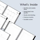 January 2025 - December 2025 day planner with 12 months of monthly and weekly pages for easy year-round planning; 6 additional monthly pages (July 2024 - December 2024) are included Monthly view pages contain previous and next month reference calendars for long-term planning, and a notes section for important projects; Major holidays listed, elapsed and remaining days noted Weekly view pages offer ample lined writing space for more detailed planning, allowing you to keep track of your appointments, reminders, ideas and to-do lists every day of the week Yearly calendar planner includes a convenient list of holidays, reference calendars, contacts pages and extra notes pages to accommodate your scheduling needs Printed on FSC-certified paper for clean writing space, with premium quality covers in rich colors and durable, coated tabs that withstand constant use throughout the year