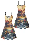 2025 New Dresses Fashionable V-Neck Style Sundress Spring/Summer Casual Sleeveless Trim Plus Size Dress Suitable For Travel, Beach Beach Casual Skirt, Beautiful Beach Flowers, Coconut Tree Sunset Graphic Print Composition: 95% Polyester, 5% Spandex Material: Polyester Length: Midi Belt: No Sleeve Length: Sleeveless Sleeve Type: Regular Sleeve Chest Pad: No Pattern: Print Applicable People: Adult Sheer: No Dresses Length: Midi Silhouette: Loose Type: Slingback Season: Spring/summer Operation Instruction: Machine wash or professional dry clean Style: Casual Fit Type: Loose Fabric Elasticity: Micro Elasticity Printing Type: Positioning Printing Weaving Method: Knit Fabric Collar Style: V-neck