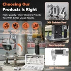👨🔧【HIGH QUALITY MATERIALS】- fender washers are made of high-quality 304 stainless steel. This material is rust-proof, and corrosion-resistant, with good abrasion resistance and high hardness, which ensures durability even under the harshest weather conditions such as rain, humidity and high temperature. 👨🔧【COMPLETE RANGE OF SIZES】- Our 304 stainless steel fender washers have 12 different sizes: M3x15x0.8mm, M4x20x1.2mm, M4x25x1.5mm, M5x20x1.2mm, M5x25x1.4mm, M6x20x1.5mm, M6x25x1.5mm, M8x20x1.4mm, M8x25x1.5mm, M10x20x1.5mm, M12x24x1.5mm total 200. 25x1.5mm, M10x20x1.5mm, M10x25x1.5mm and M12x24x1.5mm 200pcs in total, each type of stainless steel surface fender washer has a different purpose and all products require different sizes of washers. Can meet all your different needs. 👨🔧【FUNCTION OF FENDER WASHERS】- Fender washers are mainly used to reduce friction or pressure. Large fender washers are great for preventing air walls or plumbing leaks, they isolate and disperse pressure and help objects work in a better way 👨🔧【EASY TO USE & WIDELY AVAILABLE】- fender washers come with a zip lock box and are neatly packed in a sturdy box. The box has separate grids to differentiate between the 9 different sizes. Each grid is labeled with a size to make it easy to find the fender washers you need. This clear and easy-to-use storage box ensures convenient organization and easy access to the washers when needed. 👨🔧【WIDE RANGE OF SCENARIOS】- Large fender washers are highly compatible with bolts and screws - helping to mitigate material tearing in bolt heads. This fender washer set is perfect for a variety of applications including interior decorating, outdoor construction, electrical maintenance, furniture repair, and IY projects.