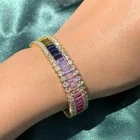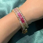 45CT Lab Created Emerald Cut Pink Sapphire Tennis Women Bracelet 14K Gold Plated