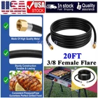 eBay 20FT Propane Hose Assembly with Both 3/8" Female Flare for Gas Grill, RV, Fire Pit, Heater, etc, Included a Pipe Fitting 3/8" Flare x 1/8" MNPT 20 feet propane hose for extending the distant between the propane tank and your LP appliance. Use it to keep your gas tank farther away from grills. You don't have to move your larger fuel tank. Connect an appliance equipped with 3/8" male flare fitting. This hose has 3/8" female flare fittings on both ends.Come with pipe fitting 3/8" Flare M x 1/8" MNPT. Solid brass fitting and High quality rubber hose construction withstands weather, scratching, denting and corroding. Our propane hose work pressure is 0-350 PSIG,and it pass the CSA Certified, you can enjoy the BBQ. Use for Gas Grill, RV, Turkey Cooker, Propane Fire Pit, Generator, BBQ Gas Grill, Heater and More.Most commonly used to connect an auxiliary tank to a motor home/travel trailer. High Quality Material: This propane hose is made of long-lasting rubber and the connection is made of 100% solid brass construction withstands weather, scratching, denting and corroding. This hose has female 3/8" ends on both sides, which can connect an appliance equipped with 3/8" male flare fitting. Use for Gas Grill, RV, Turkey Cooker, Propane Fire Pit, Generator, BBQ Gas Grill, Heater and More. Most commonly used to connect an auxiliary tank to a motor home/travel trailer. Note: 1. For your safety, please check and make sure the hose is away from the OPEN FIRE and HIGH TEMPERATURE place before installing it to your appliances. 2. All propane appliances including Gas Grill, Turkey Cooker, Propane Fire Pit, Generator, Heaters and Stoves are Outdoor Use. 3. Both propane tank side and grill side should be Fully Tightened before using on your propane appliances to prevent leakage. Length: 20 Feet Working Pressure: 0-350 PSIG Material:Thick Rubber and Solid Brass Fitting Hose Diameter: 5/16" ID CSA Certified Propane Hose’s Thread: 3/8'' Female Flare x 3/8'' Female Flare Brass Thread: 3/8" flare M x 1/8" MNPT