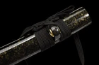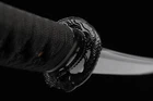 Product Parameter : Number: TYQ338 Package: 1sword+1bag Tang(nakago): Full tang Blood Groove: with bohi Tsuba: Alloy Overall: 52cm / 20.5'' Tsuka: 18cm / 7.09'' Blade: 30cm / 11.8'' Width: 3.2cm / 1.26'' Thickness: 0.7cm / 0.28'' Scabbard: Shiny lacquered wood saya, with gold spots. HRC(Hardness): 56 Hamon: Without hamon Material: 1095 high carbon steel , hand made forged, quenching, polishing, electroplated color, etc. Fittings: Brass habaki&seppa + alloy fuchi&kashira&menuki + Japanese silk ito/sageo TANTO: A tant is one of the traditionally made Japanese swords that were worn by the samurai class of feudal Japan. The term has seen a resurgence in the West since the 1980s as a point style of modern tactical knives, designed for piercing or stabbing. The tant is a dagger. The blade is single or double edged with a length between 15 and 30 cm (6 12 inches, in Japanese 1 shaku). Women sometimes carried a small tant called a kaiken in their obi primarily for self-defense. Change accessories Additional Service Sword Noun Explananation About us Delivery details Change accessories Alloy Tsuba Iron Tsuba Brass Tsuba TSUBATSUKA-ITO & SAGEO Tsuka-ito is the wrapping of the tsuka and sageo (下緒 or 下げ緒) is a hanging cord that is passed through the hole in the kurigata (栗形) of a Japanese sword's saya. SAMEGAWA Samegawa(鮫皮)is the ray or shark skin wrapping of the tsuka (handle/hilt). SAYA The saya is a wooden scabbard for the blade; traditionally done in lacquered wood. Additional Service It is free for engraving English words,Chinese characters and Japanese Kanji. You need pay additional $20 for engraving patterns (dragon, lion, etc.) or other logos. Hamon We can add or remove the machine-made wavy hamon for free. Bo-hi ( Blood Groove) Usually thought be used for bloodletting only. It is also used to lighten the weight of the sword. We can add or remove Bo-hi for free Sharpness Most of our blades are sharp. We can also make the blade unsharpened for free if you require. Colored Blade If you want to change to a different color blade, please contact us before purchase. Matching Swords Set If you buy one katana, we can make a matching Wakizashi or Tanto for you. The price varies from different swords. Please contact us if you need make custom matching set. Sword Noun Explananation Quenching After the blade has been shaped, the sword would be quenched. We quench our swords in either water or oil. Water quenching produces a tougher edge which can also be hardened further more using clay. Blades quenched in oil are still considerably hardened and do have superior flexibility compared to a water quenched blade. Folded Steel : In the forging process , the most useful process is the folding, where the metals are forge welded, folded, and welded again, as many as 16 times. The folding removes impurities and helps even out the carbon content, while the alternating layers combine hardness with ductility to greatly enhance the toughness. The less impurities, the harder and sharper the blade will be. We have done cutting tests on the blades. it can cut bamboo(young bamboo tree), grass mattings and slice paper(The blade should be tilted at 45 degrees). Clay tempered : To maximize both the cutting edge and the resilience of the sword spine, a technique of differential heat-treatment is used. The sword is painted with layers of clay before heating, providing a thin layer or none at all on the edge of the sword, ensuring quick cooling to maximize the hardening for the edge. A thicker layer of clay is applied to the rest of the blade, causing slower cooling. This creates softer, more resilient steel, allowing the blade to absorb shock without breaking. About 1095 carbon steel : The best quality of high carbon steel is at 1095, the carbon content was 1.03%, and the element contains a small amount of chromium, molybdenum, vanadium, after heat treatment can reach HRc58-60 hardness, toughness is very good, but not resistant to rust, more be applied to traditional european-style hunting knife, large cutting knife and military dao. Such as the United States during world war ii "KA - BAR" saber is in 1095 as the blade material. Kobuse : The vast majority of modern katana and wakizashi are the maru type which is the most basic, with the entire sword being composed of a single steel. The kobuse type is made using two steels, which are called hagane (edge steel) and shingane (core steel). Steel of different materials is forged and welded together to hammer the basic shape of the sword. This allows the overall blade to have a higher toughness and absorb a lot of impact. Reducing the possibility of breaking or bending to some extent. Makes the blade not only has high hardness, but also has super toughness About us We have our own sword-casting factory. The factory is located in Longquan, a small town with a long history of sword-casting in China. Most of the famous Swords in China are made there. Rich raw materials, skilled technology, traditional sword casting technology from generation to generation. Real production process picture The traditional way of making sword by hand Delivery details a) Import duties, taxes and charges are not included in the item price or shipping charges. These charges are the buyer’s responsibility. b) Only paypal accepted. Paypal is convenient and safe for both of us. c) I f you have any problem after recieve the package (wrong size, wrong style, etc.). We always provide you with the best after-sales service. Please g ive us a chance to help you before you give us a bad feedback. Thank you very much!