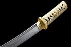 Product Parameter : Nakago: Full-tang, 1 mekugi Blood Groove: with bo-hi Blade Color: No color Tsuba: Alloy Overall: 52cm/ 20.5'' Handle(tsuka) : 18cm/ 7.09'' Blade: 30cm/ 11.8'' Width: 3.2cm/ 1.26'' Thickness: 0.7cm/ 0.28'' Tsuka: 18cm/ 7.09'' HRC(Hardness): 60 Scabbard: Shiny lacquered wood saya Material: T10 high carbon steel, clay tempered , Hand forged, Quenching, polishing, etc. Other fittings: Brass habaki & seppa + Alloy fuchi & kashira & menuki + Golden Japanese synthetic silk ito/sageo TANTO: A tantō is one of the traditionally made Japanese swords that were worn by the samurai class of feudal Japan. The term has seen a resurgence in the West since the 1980s as a point style of modern tactical knives, designed for piercing or stabbing. The tantō is a dagger. The blade is single or double edged with a length between 15 and 30 cm (6 12 inches, in Japanese 1 shaku). Women sometimes carried a small tantō called a kaiken in their obi primarily for self-defense. Tsuba & Fuchi & Kashira & Habaki Saya Additional Service About us Delivery details Tsuba & Fuchi & Kashira & Habaki Alloy Tsuba Iron Tsuba ( extra $10) Brass Set ( extral $50 ) Alloy Fuchi & Kashira Habaki TSUKA-ITO & SAGEO Tsuka-ito is the wrapping of the tsuka and sageo (下緒 or 下げ緒) is a hanging cord that is passed through the hole in the kurigata (栗形) of a Japanese sword's saya. SAMEGAWA Samegawa(鮫皮)is the ray or shark skin wrapping of the tsuka (handle/hilt). Saya Please contact us before placing an order to see if there is any stock available, as well as any additional charges. OX Horn Saya Additional Service It's free for engraving English words, Chinese Characters and Japanese Kanji , etc. You need pay extral $20-30 for engraving patterns. Hamon We can add or remove the machine-made wavy hamon for free. Bo-hi ( Blood Groove) Usually thought be used for bloodletting only. It is also used to lighten the weight of the sword. We can add or remove Bo-hi for free Sharpness Most of our blades are sharp. We can also make the blade unsharpened for free if you require. Colored Blade If you want to change to a different color blade, please contact us before purchase. Matching Swords Set If you buy one katana, we can make a matching Wakizashi or Tanto for you. The price varies from different swords. Please contact us if you need make custom matching set. About us We have our own sword-casting factory. The factory is located in Longquan, a small town with a long history of sword-casting in China. Most of the famous Swords in China are made there. Rich raw materials, skilled technology, traditional sword casting technology from generation to generation. Manual production really takes a lot of time. We will prepare most products in advance ,and arrange delivery within about a week. However, sometimes the delivery time is delayed due to weather or raw materials,etc. we hope to get your understanding. Feel free to contact us to inquire about the status of your order. Each handmade sword is unique. Our swords are great for gifts or for your own collection. Our swordsmithing master makes every sword attentively, hope you can feel our sincerity. We will also give you the best customer service, any questions please feel free to contact us. Delivery details a) Import duties, taxes and charges are not included in the item price or shipping charges . These charges are the buyer’s responsibility. b) If you do not receive the package, or the package is damaged during transportation. We'll take care of it. Please feel free to buy. c) If it is mentioned in the product description that the package includes the sword bag or sword holder , the style will be random. The sword holder or sword bag on the ebay picture is the props we use for shooting. If you really like a style, please contact us before buying. d) If you have any problem after recieve the package (wrong size, wrong style, etc.). We always provide you with the best after-sales service. Please give us a chance to help you before you give us a bad feedback . Thank you very much!