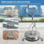 Specifications: Size::20 Inch Power Source:manual Color:Silver Max Pressure:4600 PSI Working Pressure:3300 PSI Max Water Flow:11.5 GPM Features: 【Professional 20" Pressure Washer Surface Cleaner】 This 20-inch pressure washer surface cleaner is designed for large flat surfaces such as patios, driveways, sidewalks, porches, and decks. It is also suitable for vertical surfaces like brick walls and stucco, making it an ideal choice for both home and professional cleaning. 【Enhanced Mobility with 4 Wheels and Dual Handle】 Equipped with four wheels and dual handles, this pressure washer surface cleaner offers smooth maneuverability and precise control during operation. It reduces arm and back strain, saving up to 80% of labor and time compared to traditional cleaning tools. 【Durable & Lightweight Stainless Steel Surface Cleaner】 Made from lightweight PP material, solid brass, and fully sealed bearings, this pressure washer surface cleaner is both durable and easy to handle. The upgraded bearings prevent leaks and clogs and can be lubricated to ensure long-lasting, safe performance. 【Easy Assembly & Wide Compatibility】 This 20" pressure washer surface cleaner supports up to 4600 PSI and features a 3/8" quick plug inlet for fast and secure attachment. It is compatible with most gas and electric pressure washers over 2000 PSI & 2 GPM, including hot water machines, making it versatile and easy to install. 【User-Friendly Adjustable Handle Design】 The pressure washer surface cleaner comes with an adjustable handle for comfortable use. Simply activate your pressure washer, press the trigger, and walk steadily behind the cleaner to efficiently clean various surfaces with ease and comfort Payment Delivery Returns Feedback We accept Payoneer only. All major credit cards are accepted through secure payment processor PayPal. Payment must be received within 7 business days of auction closing. If you have bought multiple items from me, you can send me one payment for all the items instead of paying for them individually. When you click the Pay Now button, eBay will automatically determine if there are other items you have won or purchased from me and will combine them for your review. NOTE: Import duties, taxes and chargers are not included in the item price or shipping charges. These charges are the buyer's responsibility. Please check with your country's customs office to determine what these additional costs will be prior to bidding buying. 1. We will delivery out at the handing time when we receive the payment. 2. The delivery time is 3-5 business days to US by usually time.The parcel maybe delay 1-2day of the weekend.Due to the bad weather,Holidays,Hot Season ect.the parcel maybe delay,If you have any problems,mssage us,we will try our best to solve it. 3. We ship to your eBay address. Please make sure your eBay address is correct before you pay. 4. If you want to change the shipping address,message us before our send out. 5. We cannot deliver your order if your state is PR. 1. If you donot receive the items at the delivery time,the parcel has broken/missing,Please message us before you open case/return,we will try our best to solve it. 2. We offer a 30 day return policy from checkout winning date. 3. An RMA number is required for all returns. Message us for return instructions. Items Returned without a RMA number will not be processed. 4. Items defective upon receipt must be packaged in their retail packaging as if new and returned with a detailed description of the problem. 5. Return shipping fees are not refundable.We reserve the right to decline any returns if the above guidelines are not followed. If you are not satisfied with the item for any reason, please do not quick to leave negative/neutral feedback even open request and case without any communication with us. We devote ourselves making EVERY CUSTOMER in 100% Satisfactory and resolve any problem. Thank you for your understanding and recognition,we are always leave positive feedback to all our customers. About Reply: All replies will be sent to your email box, if you do not get response within 24 hours (Sat. & Sun. excluded) please check your eBay My Messages in case that our emails will be filtered automatically by your settings.