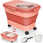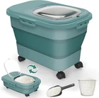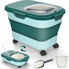 Durable and Food-Grade Materials: Made of high-density polypropylene and TPR materials, the dry food container is BPA-free, non-toxic, and built to withstand repeated folding and use Portable & Space-Saving: The pet food storage bin comes with rolling wheels for easy mobility. Folded it to store on a shelf or attatch the wheel to roll it from the storage area to your dog or cat bowl. When unfolded, it can store about 33 lbs of rice or 20 lbs of pet food. When folded, it can store about 10 lbs rice or 6.5 lbs of pet food Superior Airtight Sealing: The double airtight seals with side-locking lid ensure airtight protection, liquid friendliness and prolonged food storage. Designed a desiccant storage slot inside the lid to place desiccant to enhance the freshness of your stored rice Clear & Easy-Control of Food: Transparent lids with a magnetic flip-top window allow for quick viewing and easy access to the remaining amount quickly. The flour storage bin includes a measuring cup and scoop for precise portion control of food taken out Versatile & Extra-Large Storage Container: Ideal for a variety of dry foods including pet food, rice, millet, beans, nuts, oats, cereals, flour, coffee, snacks, seeds and so on.【Note: Due to variations in kibble size, container capacity may vary. Maximum capacity holds up to 20 lbs of dry pet food】