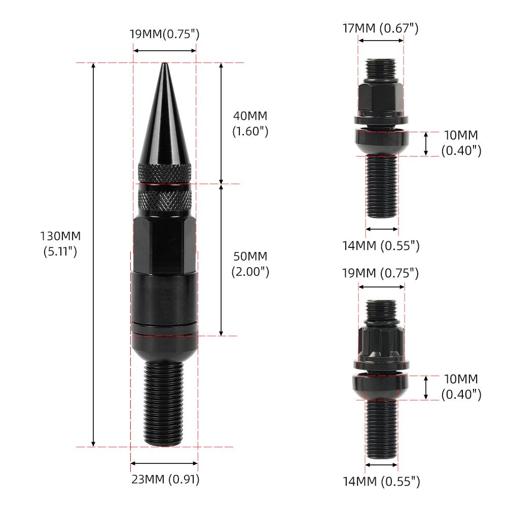 20PCS Racing Wheel Spike Lug Nuts 14x1.5 Lug Bolts Closed End Ball Seat w/ Key SPECIFICATIONS: Type: Spiked Wheel Nut Material: Aluminum Alloy + Steel Steel Lug Nut Construction / Aluminum Cap & Shell Thread Pitch Size: M14x1.5 17mm Hex | 130mm Overall Length | 30mm Shank | 40mm Spiked Cap Seat Type: Ball Seat (when you remove the Black seat, it will turn into Mag Seat) End Type: Closed End Design FERTURES: 100% quality assurance tested, more responsive, less expensive, easier to install. Made from steel and aluminum, high strength, not easy to break. Electroplating prevents oxidation and protects the steel. 60 degree conical bulge seat lug nuts for secure fit.Perfect for replacing rusted and/or broken lug nuts. Great for showing off your wheels and enhancing the overall look of your vehicle. The oversized 60 degree tapered seat offers better contact on the wheel and the topis knurled for easier installation. FITMENT: Vehicle with Thread Pitch M14x1.5mm with 60 Degree Conical Seat ONLY Will NOT fit on wheels with Acorn, Conical or Tapered Seats Please check the size of nuts on your wheels before buying. PACKAGE INCLUDE: 20 × Spike Lug Nuts (including 4pcs Anti-theft Nuts) 2 x Socket Wrench Tools All accessories in the picture are included. NOTE: 1. Please allow 0.5-1 inch difference due to manual measurement. (1 inch=2.54cm) 2. Please check the size measurement and the picture carefully before makingpayment. 3. Due to the difference between different monitors, the picture may not reflect theactual color of the item. Please understand, Thank you. SHIPPING INFORMATION PAYMENT WARRANTY ABOUT US CONTACT US SHIPPING INFORMATION We will only ship this item to buyers by Normal Mail, please confirm your address is correct, and if you want to change the delivery address, just feel free to contact us when you purchase. Usually, we will ship the orders out and upload the tracking number within 1-2 business days(Monday to Saturday from 8:30am-5:30pm) after you complete the payment. PAYMENT We will only accept eBay payment. Please pay using eBay payment ONLY within 7 days from the date of transaction be made. WARRANTY Please inspect your order upon receipt.No damage claims will be honored after 14 days of delivery. All item we sold come with 90 days defective warranty from the date. ABOUT US We are a powerful factory producing auto parts,and we have a professional sales and after-sales team that can provide you with excellent products and services. CONTACT US For any reason you want to contact us,We aim at satisfying every visitor, no matter what kind of situation you meet with, we will be right here to serve you. Please contact our team. If you are happy with the transaction with us, leaving us an ALL-5-STAR positive feedback would be greatly appreciated. Have a good shopping.