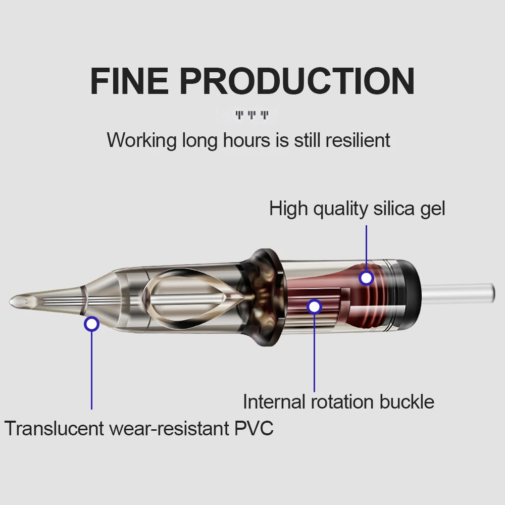 These tattoo needles are a game-changer! Super sharp, smooth application, and the variety of sizes covers all my needs. Sterilized and securely packaged—no worries about contamination. The plastic cartridges are sturdy, and the stainless steel needles glide effortlessly. Perfect for both beginners and pros. Highly recommend for consistent, clean lines and shading. Great value for the quality!