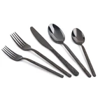 20-Piece Lumi Stainless Steel Flatware Set, Black. Elevate your dining experience with this exquisite 20-piece stainless steel flatware set. Crafted with precision and designed with style in mind, this set is the perfect addition to your dinner table. Whether you're hosting a formal dinner party or enjoying a cozy family meal, our flatware set adds a touch of sophistication to every occasion. Our flatware is made from high-quality 18/10 stainless steel, ensuring durability for daily use and long-lasting shine. Say goodbye to rust and stains! This comprehensive set includes everything you need for a four-person meal – four dinner forks, four salad forks, four dinner knives, four dinner spoons, and four teaspoons. For care and use, please wash in warm water before first use. Do not soak and do not use in microwave. For product's longevity, please hand wash. 20-Piece Lumi Stainless Steel Flatware Set, Black 18/10 stainless steel Service for Four Made for Everyday Use