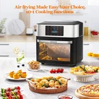 Versatile Functionality: Our spacious air fryer oven offers a wide temperature range, from a gentle 180°F to a searing 400°F. It functions as an air fryer, bake oven, grill, toaster, broiler, dehydrator, pizza grill, and oven toaster. Healthier Cooking: Embrace 'healthy fried food' with our innovative air fryer technology. Using super-hot air instead of oil reduces added fat by an impressive 85-95%, delivering crispiness while sealing in moisture. Effortless Operation: Enjoy culinary convenience with 10 smart cooking presets covering frying, baking, and dehydrating. The LED digital touch screen simplifies mode selection, while the countdown timer prevents overcooking. Safety is ensured with cool-touch casing and handles. Abundant Accessories: Transform your culinary creations effortlessly with interior lighting and a comprehensive accessory kit including a fry net basket, rotating basket, drip tray, fetch rack, dehydrating racks, chicken fork, and two oven mitts. Easy to Clean: Cleaning up is hassle-free with removable drip trays and dishwasher-safe parts. Generous Capacity: Ideal for any occasion, our air fryer boasts a generous 20-quart capacity, perfect for hosting parties or feeding a large family. ★【10-in-1 Versatility】The air fryer oven is your all-in-one kitchen solution, offering 10 preset programs to fry, bake, roast, dehydrate, reheat, and toast. With versatile accessories included, you can effortlessly cook whole chickens, fries, steaks, pizzas, kebabs, and more, all while saving counter space by replacing multiple appliances. ★【Powerful & Precise Cooking】With 1800 watts of power and 360° hot air circulation technology, this airfryer ensures perfectly crispy exteriors and juicy interiors, locking in moisture for deliciously tender results every time. ★【Non-Toxic Design】All accessories are dishwasher-safe and free from harmful coatings, PFAS, PFOA, Teflon, and BPA. You will receive 11 accessories: a rotating basket, deep basket, drip tray, fetch rack, 3 dehydrating racks, chicken fork, toast rack, tongs, and two oven mitts. ★【 Large Family Size】This air fryer measures: W14.6"xD13.4"xH15.4". Whether you're hosting a food party or cooking for a big family, our air fryer has you covered with its generous 20-quart capacity. It's ideal for preparing whole chickens and crafting various dish shapes with ease. ★【Beginners Friendly】The intuitive LED digital touch screen allows for easy, one-touch cooking, while the built-in countdown timer ensures perfectly cooked meals every time. ★【1-Year Warranty Included】Our air fryer comes with a one-year warranty, providing you with added confidence and support.