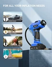 Return Policy Fast Delivery Trusted seller Cordless Tire Inflator Air Compressor 20V Rechargeable Battery Powered 160PSI Portable Handheld Air Pump with 12V Car Power Adapter Digital Pressure Gauge for Cars Motorcycles Blue Product Description 【METAL INFLATABLE STRUCTURE】: It’s composed of metal cylinder and metal gear, it could continuously work for 20 minutes, the maximum air pressure could reach 160psi, meet the needs of 4 tires at a time, more efficient and faster to use. 【DUAL POWER SUPPLY】: DC 12V power supply and 20V rechargeable Lithium battery pack power supply makes the inflation more easily. The bottom is stable enough, that you don't have to hold it. You don’t even have to worry about it running out of the battery during the trip. 【AUTOMATIC SHUT OFF&LCD PRESENT MORE】: Preset the value you desire and the air compressor will automatically shut off when the value is reached. The back-lit LCD screen will display both the desired tire pressure value and the current tire pressure. The unit of air pressure can be switched among bar, kPa and PSI. 【FAST INFLATION&CHARGING】: Air/Electricity The 20V working voltage provided by the lithium battery can inflate fast, tires of size 195/65/R15 can be filled in just 4 minutes. The 2000mAh high-efficiency lithium battery can charge 4 tires of the same size at a time, and the exclusive charger allows the battery to go from 0 to full in just 1 hour. 【MULTIPLE PURPOSE&EASY TO USE】: The air compressor is compatible with SUVs, cars, motors, bicycles, and basketball-size inflatable products. Note: not suitable for large truck tires. Attached with an exclusive storage bag, easy to carry. The LED light also allows you to inflate in the dark. Shipping Returns Payment Shipping Shipping is FREE to all addresses other than APO/PO boxes in the lower 48 states. All our stock ships from US-based warehouses. Shipped via USPS or UPS (depending on location and package weight) Unless stated otherwise, all orders will ship within 24-72 hours of your payment being processed. Check our feedback to see the great reviews of FAST shipping we offer. Returns Seller does not accept returns Payment We currently accept payment via eBay managed payments only. Once payment is cleared, we will dispatch your shipment within 1-3 business days. Please refer to the "Shipping" tab for more information regarding shipping speed to your destination.