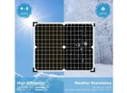 20W 12 Volt Battery Charger Solar Powered Panel for Car Dump Trailer Boat Marine Material Aluminum Product Dimensions 16"L x 13.1"W x 0.8"H Item Weight 3.8 Pounds Efficiency High Efficiency About this item Multiple Compatibility:Perfect solar power kit for variety of off grid applications like shed, cabin, gate opener, etc where 12V batteries is used, as well as to charge and maintain AGM, Flooded, GEL, Deep Cycle and Seal Lead Acid, etc batteries in car, Rv, boat, marine, trailer, camper, pump etc. Charger controller :Advanced PWM algorithm can fully protect the battery: under/over voltage, output overload, short circuit and anti-back connect protections. It can greatly enhances 20% charging efficiency with no additional self power consumption. High Efficiency Monocrystalline Solar Cells, heavy duty anodized aluminum frame, the corrosion-proof aluminum frame and tempered glass coating shield the panel from weathering and wear. Lightweight and Durable:The four corners are equipped with protective cases to better protect the glass plate and be more sturdy.Easy to install with pre-drilled holes on the back of panels for fast mounting and securing.Compare with similar items Package Included: 20 watts solar panel +10A solar charger and two 6.5ft cable with alligator clips and O-ring terminal.