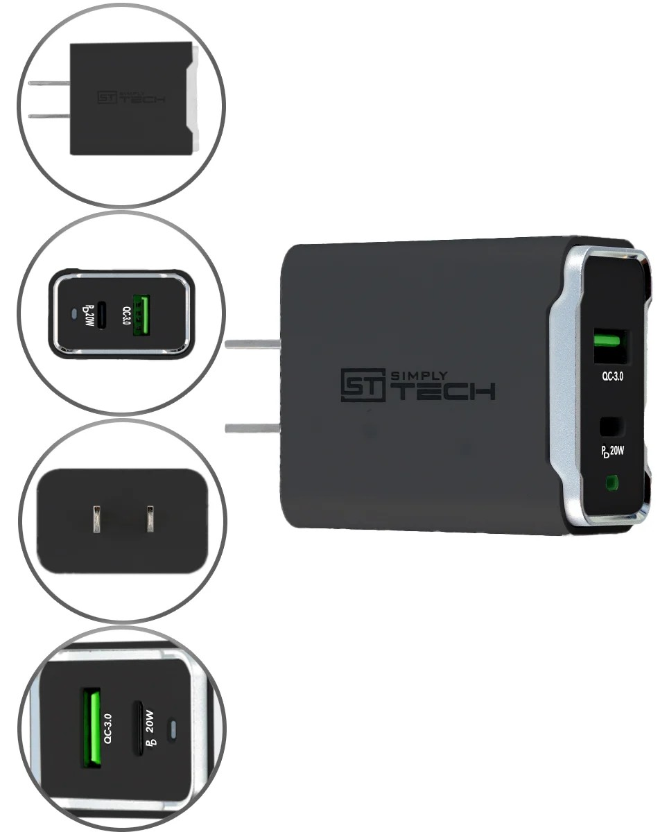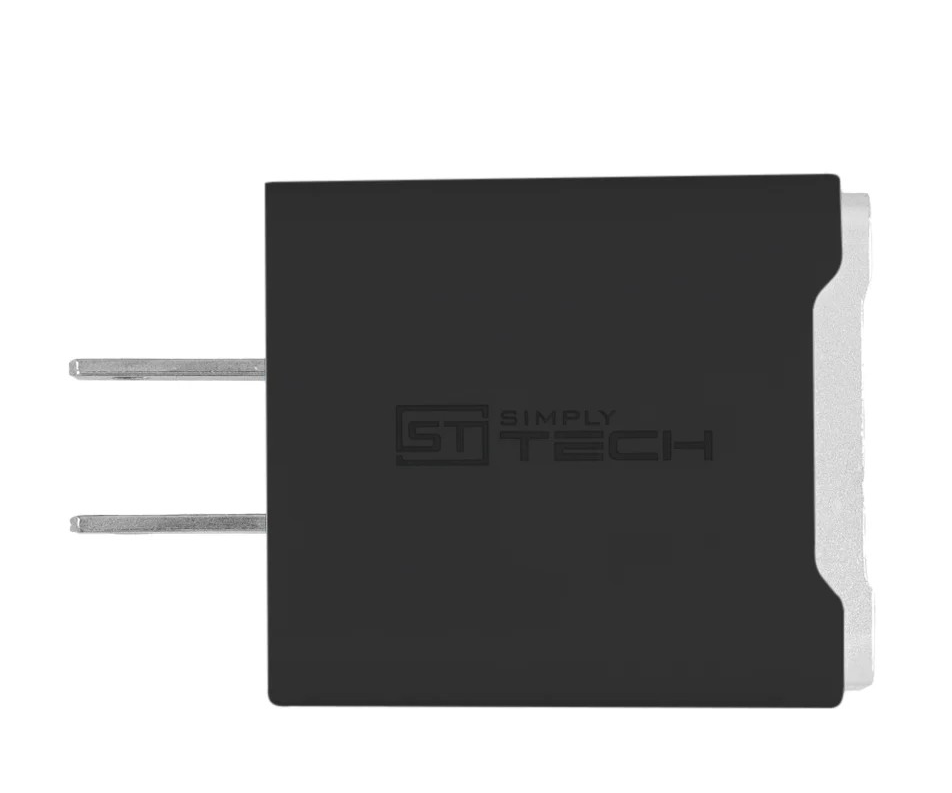 20W Fast Home Charger with Metal Trim & Dual USB A Ports - Black