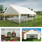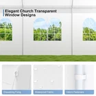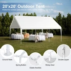 FEATURES: • Heavy-duty structure: High quality trust&corrosion resistant white powder coated steel frame with compression lock, more secure and stable. • Super large field: 20X19.5FT large space allows you to give more play to the site layout. • Weather resistant: Heavy-duty 180g PE top , waterproof, with UV protection. • Humanized design: The windows will not make you feel depressed when you stay inside. People outside can also see the situation inside. • Versatility of use: It is applicable to various occasions, such as commercial, business, party tent, wedding tent, etc. • Easy to install: Complete accessories and detailed installation instructions are provided for you to get started quickly. • NOTE: Please avoid using in harsh weather conditions and avoid irreversible damage to the product. • NOTE: Ships and arrives in 2 separate boxes. Delivery times may vary per box. Please contact after-sales service for any problems,and we will reply within 24 hours. SPECIFICATIONS: • Color: White • Material : Powder Coated Steel & 180g PE • Pipe Size: Φ38mm, thickness 1 mm • Connector Size: Φ42mm, thickness 1.2 mm • Overall: 20' W x 19.5' D x 11.7' H • Overall Product Weight: 170 lb. • Roof Hanging Weight Capacity: 5 lb. ITEM INCLUDED: Assembly Instructions, Base, Connector, Hardware, Ropes, Stakes .
