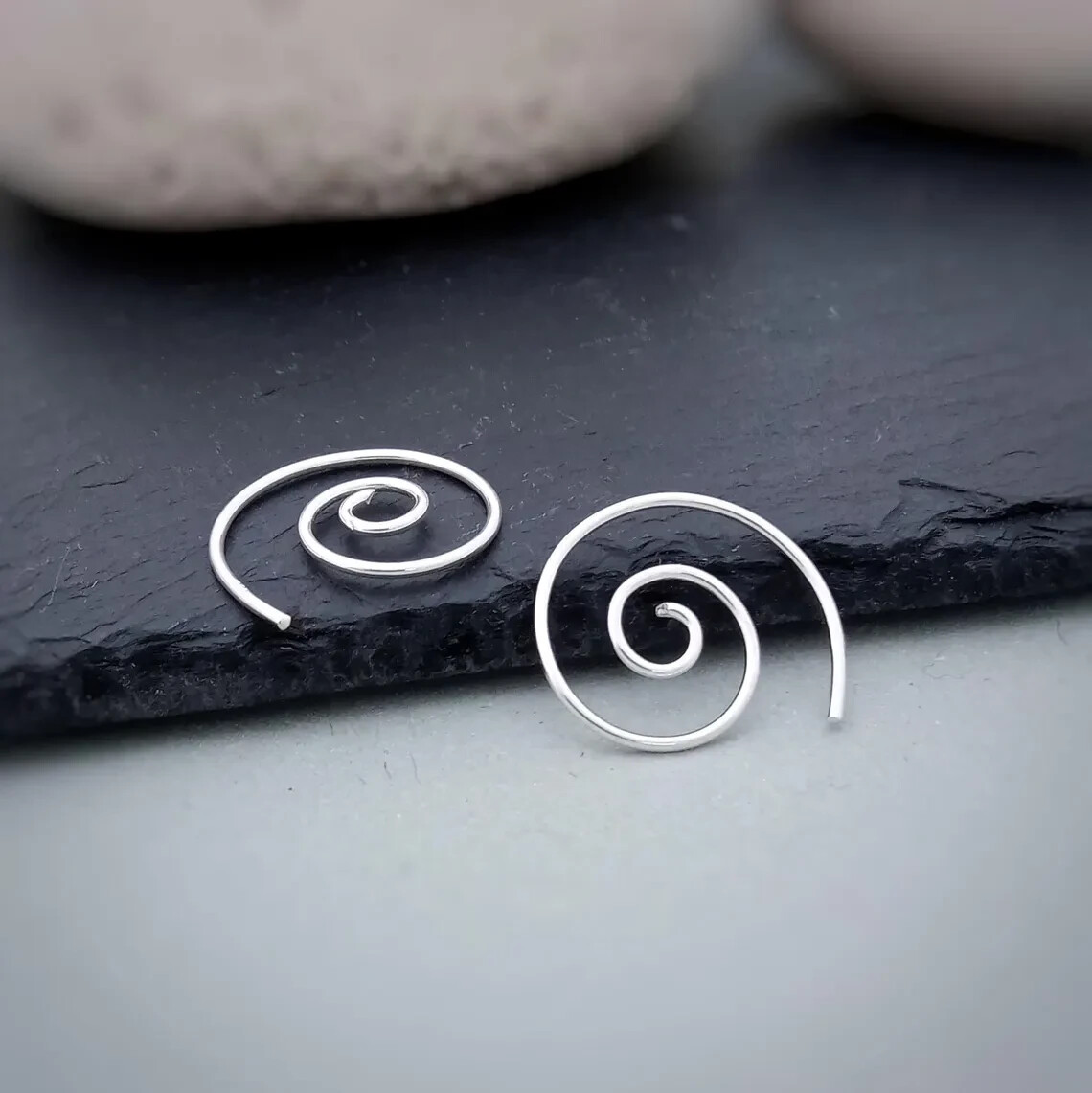 Swirly wire spiral earrings in sterling silver. Nickel FREE Elevate your style with our simple yet striking tribal-inspired sterling silver 20mm spiral earrings. These versatile earrings are perfect for both day and night, offering an effortless, stylish touch. Just threade the wire spiral in your ear lobe piercing and you're done! Simple yet extremely effective Boho minimalist style. A wonderful gift for those who appreciate understated elegance, they’re also ideal for stacking with other earrings for a unique look. Embrace the delicacy of these plain spiral earrings, adding a touch of understated style to any outfit with ease! *Other 2 sizes available in our Ebay shop Dimensions: Diameter: 2 cm Total weight approx: 1.2 grams. Delivery Information All items dispatched from the UK. Item will be carefully packaged in eco-packaging to safeguard it during delivery and our branded satin pouch ready as a gift. Standard Tracked 48 Shipping with Royal Mail or Yodel included FREE . Tracking number details will be sent after dispatch (which is usually within 1 working day of purchase. Weekends/festivities excluded). Faster shipping options also available for the UK. Worldwide shipping available with Royal Mail Tracked & Signed. Returns accepted within 14 days of receipt. At customers’ expense.