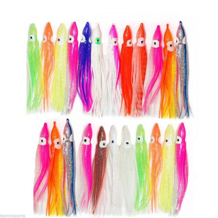 20pcs 5-15cm Octopus Squid Skirt Lure Bait Hoochies Saltwater Soft Fishing Lures Features: Octopus Squid Skirt Baits Lure High quality Soft PVC Material Different Colors Mixed. Length: 5cm, 6cm 7cm 10cm, 12cm, 15cm Packaging: Plastic bag Package Plastic Artificial Lure Lifelike Imitation Perfect for Fishing Travel Pacakge contain: 20pcs, in mixed colors since we have too many colors, so we will send all color randomly, can not select colors.