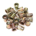 【Description】 Rivet Nuts are used when an application has little or no access to the backside. They are neat and clean and can be installed from the front side of the work piece. No finishing work is required on the rivnut after installation. These rivet nuts are strong enough to fit your requirements for various applications in home furniture, decoration, automotive , electrical & industrial products. The rivet nuts can apply in heavy duty materials such as steel, metal sheet, aluminum, plastic and fiberglass alike. Each rivet nut is made with knurled round body. 【Specification】 A variety of specifications can be selected, and there is always one suitable for you, which is easy to operate and durable. 【Features】 Color zinc plating process on surface Clear thread Surface knurling treatment 【Package Content】 20 x Rivet Nuts [High-quality materials]:Rivet nuts are made of carbon steel, with zinc plated on the surface, strong and durable, you will no longer worry about them rusting and breaking when installing.Most importantly, they are nontoxic and pollution-free environmental protection products. [Application]:It is usually used in various metal sheets, pipes and other manufacturing industries, and widely used in the assembly of electromechanical and light industrial products such as automobiles, aviation, railways, refrigeration, switches, instruments, furniture, elevators and decoration. [Reasonable design]: Our rivet nuts are knurled, with flat and deep threads, which are easy to fix and have good anti-skid effect. [Size and quantity]:20pcs rivet nuts M12.which drill hole size is 14.9mm/0.59'', total length is 22mm/0.87''.