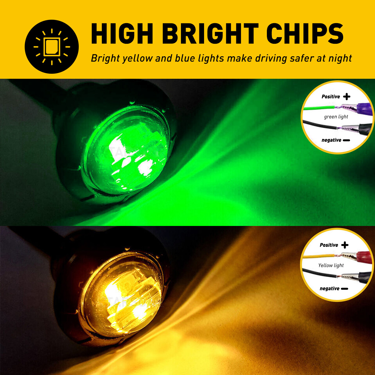 20x Round Green Amber Dual Color Side Marker Lights LED Bullet Truck Trailer Specifications Size:3/4 inch Material:ABS Housing + PC Lens Lens color:Clear Voltage:12v-24v Service life:50000h+ Color:Amber/Green Fits for: Suitable for all DC 12V-24V trailers, trucks, caravans, pick up, car, Van, RV, lorry, boat, etc Features: High brightness: High brightness light outputs for improving driving safety. Waterproof design: The waterproof design of the product works even under extreme conditions especially in rainy or foggy days.(IP67) Great design: 20x LED Side Marker Lights Truck Trailer Round Bullet Dual Color Amber Green 12V 20x Round Green Amber Dual Color Side Marker Lights LED Bullet Truck Trailer Specifications Size:3/4 inch Material:ABS Housing + PC Lens Lens color:Clear Voltage:12v-24v Service life:50000h+ Color:Amber/Green Fits for: Suitable for all DC 12V-24V trailers, trucks, caravans, pick up, car, Van, RV, lorry, boat, etc Features: High brightness: High brightness light outputs for improving driving safety. Waterproof design: The waterproof design of the product works even under extreme conditions especially in rainy or foggy days.(IP67) Great design: Compared with other brands, our back wire lead is added proper glue to make it completely seal without affecting the surface mount. Application: It can be used as clearance light, side marker light, rear marker light, turn signal light, tail light etc. Energy-saving with lower consumption. Connection: Black wire connects to negative Yellow wire connects to amber light White wire connects to white light Packaging include: 20X Side Marker Lights What makes you choose our products? Rapid logistics and response: We will dispatch your order within one work day since your payment to guarantee that you can receive your order immediately. High quality: The raw materials are strictly inspected high-quality ones. In addition, our inspectors will inspect all the products again before they are dispatched to guarantee all customers receive good products. Guaranteed after sales service: We provide quality guarantee services 2 year. Any customer can contact us for any problem during the period. We provide after sales services within one work day. High cost performance: Providing products with high cost performance is our lasting objective. Our products may not be the cheapest or expensive ones, but they must be the ones with the optimal cost performance. In general,you can enjoy reliable quality, speedy service along with competitive price. Your satisfaction is my goal.My customer service is not only the guarantee of money,but also the guarantee for your time and expectation. Item Specifics Features CAN bus Compatible Manufacturer Warranty 1 Year Brand AUXITO OE/OEM Part Number AUXITOLED Fitment Type Direct Replacement Lighting Technology LED Superseded Part Number side marker light,off road lights, rear bumper,back up lights Suitable For Side Marker Light Accessory Light Material ABS Housing PC Lens To Fit Side Indicator Bulb Type LED Lens Color Clear Color Temperature 6000K Light Color Amber/Green Number of Bulbs 20 Placement on Vehicle Front, Rear, Left, Right, Bumper, Grille, Roof, Upper, Lower Waterproof Yes Other Part reverse lights, windshield lights,road, rock, docking lights Fit for Universal For Any 12V Vehicles Heavy trucks Manufacturer Part Number Does Not Apply Type Side Marker Light Application 1 For JEEP Wrangler/grand cherokee/Rubicon/Compass Application 2 For Chevrolet Colorado/Silverado 1500/2500/3500HD Application 3 For Ford Ranger/Focus/F150/250/350/450/550/650/750 Application 4 For Ford F-100 F-150 F-250 F-350 Pickup Application 5 For Chevy C10 C20 C30 Pickup Suburban Universal Fitment Yes Voltage 12 V - 24 V Performance Part Yes Vintage Car Part No Bulb Life Hours Up to 50,000 Hours Size 3/4 inch Other Part 1 Offroad Car Bus, Lorry Camper Motorcycles Motorbikes, Dump Other Part 2 Snowmobile Motorhome, Ford Cab UTV ATV RV SUV RZR Boat FAQ ♥ If you have a decoding problem or any other problems, please contact us first, we will help you with it. We will reply you within 24 hours in working days. I'm a new seller, thanks a lot for your trust and convince! I will serve you with all my heart. ♥ Q1: Will this bulb fit my vehicle? A: We can match almost any vehicle to one of our bulb sizes. eBay only lets us include some vehicle fitments per listing, but if your vehicle does not show up on the compatibility table at the top of our listings, welcome you to contact us for free consulation before purchasing a product. Q2: My item has not arrived, what's taking so long? A: Sometimes items take longer than expected, especially if it’s going far or to rural area. Check with your post office to see if your item has been held up. Sometimes Royal Mail will not update a tracking number until it has arrived at its destination. If your item still don't arrive after a few days, let us know so we can double check for you and help solve it asap. Q3: My bulbs won't fit, help! A: Special bulb holder may be required. See if you can take the holder from the stock bulb. If not, let us know. The bulb size may be wrong, double check the item you received with the item you ordered. Do you have an aftermarket lighting housing? These may not be perfectly fitted for aftermarket bulbs and will require some manual modifications. Q4: Neither side lighting up? Both sides flicker, hyper flash, or work inconsistantly. A:Check the light fuses, and then check the ballast plugs to insure correct installation. If this doesn't work, there may be a voltage problem with the vehicle. You probably just need a relay or capacitor. Even though some bulbs are builtin resistors, they may still need a decoder. Pay & Ship (1). We gladly accepts payment via PayPal, We will ship your item(s) within 24 hours. (2). Before payment, please keep the consistency of Paypal address and ebay address. (3). Quantity orders are welcome! Returns (1). We offer 60 days free return policy. P