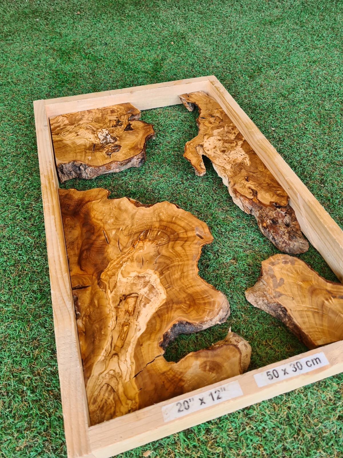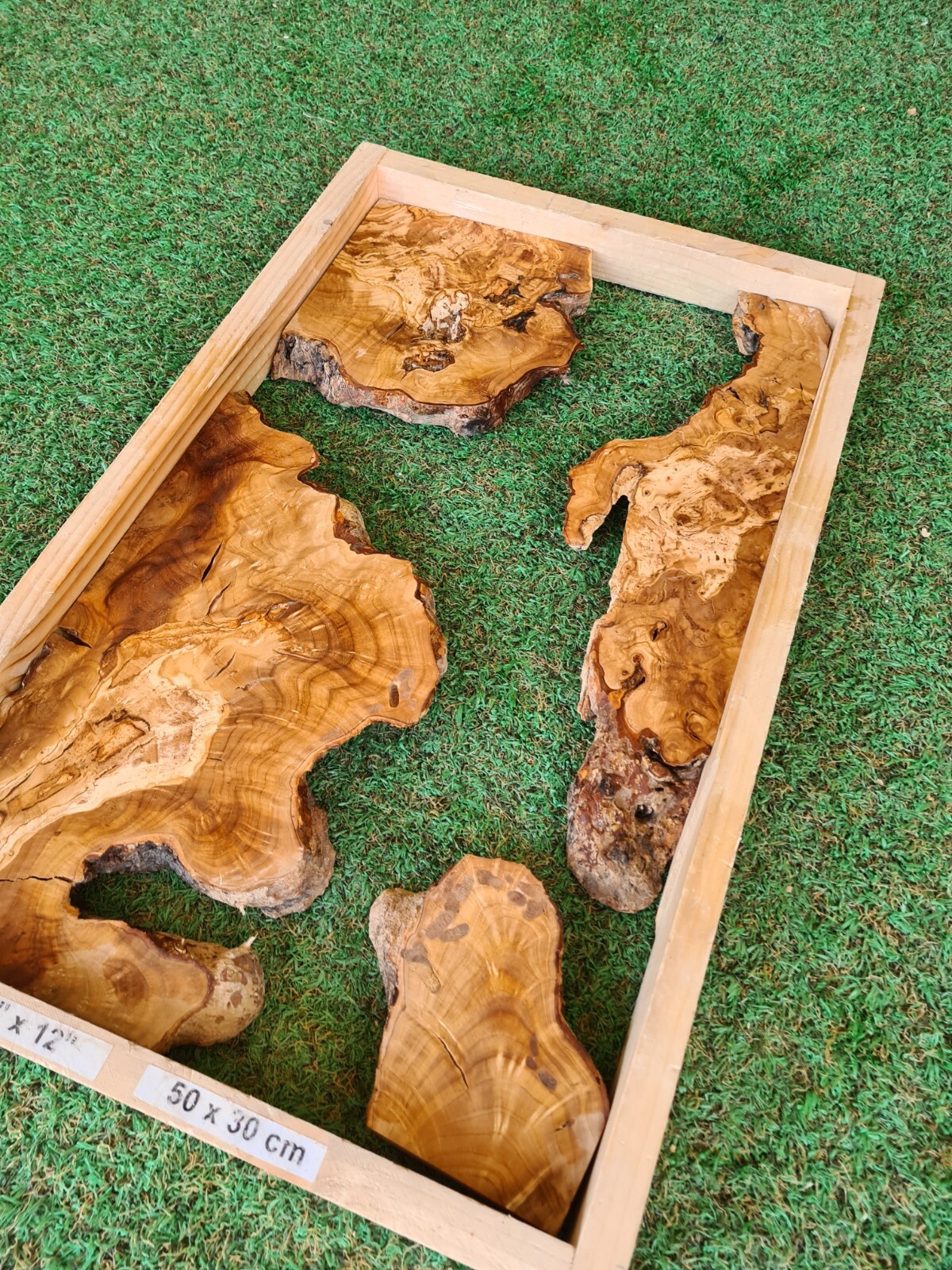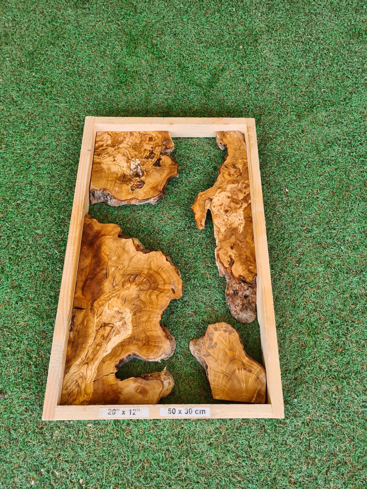 20'' x 12'' Live Edge Olive Wood Board For Resin Art Projects, Olive Wood Epoxy Boards With Natural Slabs, DIY Wood Art Epoxy Wood Sets !! Note : You will get a set similar such as photos!! The frame is not sale! **** Product **** Material : Solid Olive Wood Tree Sanded : Yes ( Both Side ) Final Grid : 200 Smooth Surface : Yes (Both Side) Moisture : % 10-12 Dry Wood : Yes - Air Ready to Process : Yes ****Board Dimension**** 20'' x 12'' - 50 x 30 cm Thickness : 0,8''- 1'' / 2- 2,5 cm ****Shipping***** # Process Time : 1-3 Business Days # Delivery Time : 3-5 Business Days # Shipping : Free-Express-UPS-Fedex # Tracking and Insurance : Yes # Safety Packing : Yes Looking for a specific size or design? Contact us to discuss a custom order please ! olive wood slab, olive wood river set, charcuterie board, raw edge olive wood, olive wood board, resin art wood, wood for epoxy, burl wood, raw edge wood, live edge slab, diy wood art,wood for resin, olive wood slices,