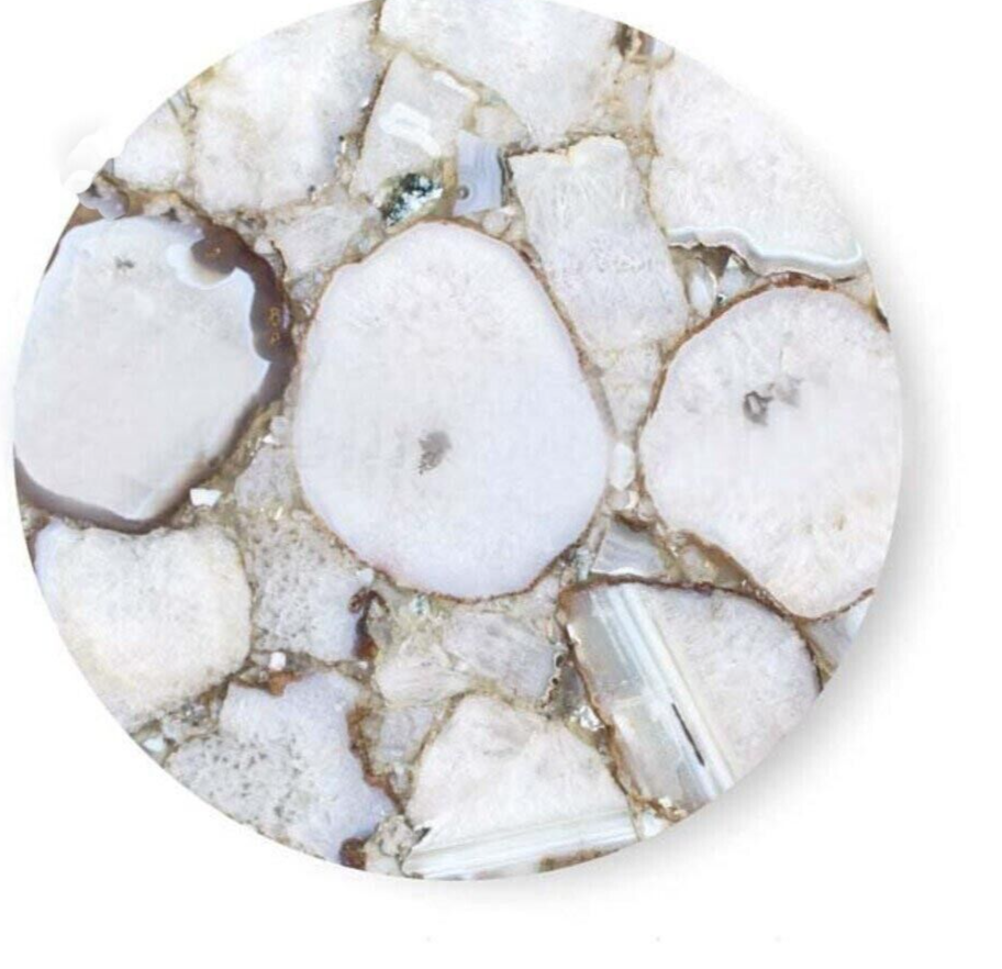 Welcome To Stone-Craft- Creations Shop Description Very unique Art by Indian Artist ,Coffee/Side Table top Used Material: Natural Agate Stones Arts Size: 20"x20" Inches Color: As Photo Shape: Round Pattern: Handmade Room: Bedroom, Dining Room, Hallway, Home Office/Study, Kid’s Bedroom, Kitchen, Laundry/Utility Room, Living Room,Patio, Playroom Packaging: Wood & Foam Export Packing Shipping: Air Can Be customize ,Please Message us your desired Size 1. It can be used as a Dining Table, Guest table, coffee table, center table top in show room as well as a gift for your loved ones. 2. The table top is made in Agra India & fully handmade. 3. The top will be delivered by FedEx or DHL free of cost door to door. 4. If there is any local tax,custom duties or Vat will be paid by the buyer at the destination. 5. The parcel is dispatch with proper packing & fully insured covering all kind of risk. 6. To maintain the table top is simple soap & water & dry cotton cloth. 7. If You Are Looking Something Customize, Let Us Know We Will Make For You As Per Your Design, Size & Shape. 8.Table top does not includes any wooden, marble stand or base if you like to buy marble or wooden base or stand that will be charged extra. Marble Agate Table Tops We are Manufacturer & Exporter of marble agate table tops. These marble agate table tops have different shapes like Round Table top, Octagonal Table Tops, Rectangle / Dining table tops, Square Table tops, Chess Table tops, Taj Mahal Table tops, Custom Designs Table tops also make marble Table top Base and Stand. Then we can be used as dining tables, coffee tables, Center tables, conference tables, chess boards, reading tables, bar tables , Garden table, side and corner tables or any other use as per the indoor and outdoor decor. They can also be placed outdoors in the garden, as marble is stain free, offers great resistance to the forces of nature, and can withstand heavy temperatures. We also meet customized requirement and offer our marble table tops at industry leading prices. About Agate Stone- Agate is a rock consisting primarily of cryptocrystalline silica, chiefly chalcedony, alternating with microgranular quartz. It is characterized by its fineness of grain and variety of color. Although agates may be found in various kinds of host rock, they are classically associated with volcanic rocks and can be common in certain metamorphic rocks. Ancient use of agate stone Agate is one of the most common materials used in the art of hardstone carving, and has been recovered at a number of ancient sites, indicating its widespread use in the ancient world; for example, archaeological recovery at the Knossos site on Crete illustrates its role in Bronze Age Minoan culture Types Of Agate 1. Fortification Agate This is the most common and distinctive type of agate. In these agates, bands crystallized into concentric layers that more or less follow the shape of the cavity. The banding resembles an aerial view of a fort 2. Water-Line Agate (also called water-level or onyx) During its formation, silica-rich solution either entered the cavity slowly laying one band at a time, excess water drained out leaving a small amount of silica to settle out into separate bands, or the vesicle filled under low pressure. In any case, the silica crystallization in water-level agates is controlled by gravity in one orientation, forming a stack up of parallel bands. 3. Shadow Agate Some agates exhibit a shadow effect in which there is what appears to be movement across the agate layers when the specimen is rocked back and forth (or your orientation to the specimen moves). This optical effect only occurs when there are alternating translucent and opaque bands. It is caused when light goes into the agate, but is not reflected out. 4. Tube Agate Tube Agate During the formation of some agates, parallel projections of tiny hair-thin mineral rods grow first within the silica gel, around which later the chalcedony agate micro-crystals form. In some cases the inclusions remain, but sometimes they weather away leaving hollow tubes that subsequently fill in with silica. 5. Eye Agates This mysterious agate characteristic is believed to be formed when most of the silica gel drains from the cavity, leaving only a droplet that “beads up” on the inside wall of the cavity. This droplet crystallizes into solid chalcedony “eyes”. In some cases, crystal growth will continue from this droplet in a manner similar to the formation of stalactites in caves. Later, the pocket fills in with the usual deposition of chalcedony microcrystals. 6. Plume Agate These agates initially had formations on their outside layer that formed prior to the deposition of chalcedony bands. They are filament growths of mineral inclusions that resemble ferns or feathers. 7. Geode Agate Geode Agate In some cases the supply of silica-rich water runs out before the entire cavity fills in. When there is a hollow center within a crystalline outer fill, the specimen is considered a geode. Not all geodes have agate banding, but many do. Also, the inner layers can form into several different types of silica mineral crystals and may even have other types of mineral crystals. 8. Moss Agate Moss Agate Moss agates have clusters of mineral inclusions that resemble plants, trees, or landscapes. Most moss agate inclusions are comprised of iron or manganese oxide. In some cases, the inclusions inhibit chalcedony banding allowing the mineral clusters free reign to grow within the silica gel. 9. Seam Agate Seam agates for in cracks within host rock, rather than in rounder pockets. The bands form in parallel rows that follow and fill in the crack or seam.