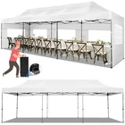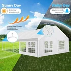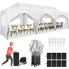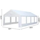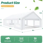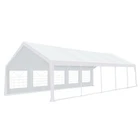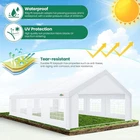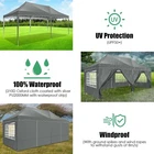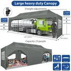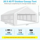 Description Heavy Duty 20x40 Event Tent Large Shelter with Removable Sidewalls, Carpas para Fiestas Commercial Outdoor Canopy Wedding Tent Carport, UV 50+, Waterproof About this item 💐 【 Heavy duty Structure & Closed Extra Ground Bars 】party tents 20x40 made from 1.5inch diameter all metal tube frame with elegant white paint coating, preventing chipping, peeling, rust, and corrosion. The stable triangular roof and closed ground link structure make the product more stable and less likely to shake than similar models on the market. Pegs and wind ropes, to make the event tents much safer and more stable. (Please do not use it when the wind is strong). 💐【 20x40 FT Extra Large Size & Versatile Usage 】20x40 tent can hold up to an estimated 50 people for for parties, or weddings, and can also be used as a carport or outdoor storage tent. Straight leg design and cathedral style roof offers an open-air feel for a variety of outdoor activities. Great for tent party, outdoor events, outdoor shelter. 💐【 All Season Tarp & Cathedral Windows 】 This heavy duty party tent top cover is made of heat-sealed, triple-layer 160g polyethylene fabric can Block 99% of Harmful UV Rays, which is waterproof and windproof, rainproof, dustproof and anti-snow, tear resistant etc. Waterproof PVC cathedral windows on the sides provide the tent with bright light and a good view. 💐【 Removable Sidewalls & Excellent Ventilation 】Our wedding tents Comes With 6 removable sidewalls with 12 PVC church windows and 2 zipper doors with windows. The number of the sidewall can be installed freely as needed. Roll-up zipper door and detachable sidewalls for even better ventilation, providing cross ventilation and venting on hot days. Also provides warmth on cold days. 💐【 Easy to Assemble & Warranty 】This waterproof outdoor wedding gazebo does not require additional installation tools. Connectiong with spring bottom simple and easy to use for quick installation. Any problem with any part, you can contact our customer service, we continue to provide you with after-sales service. Please note that this party tent is NOT FIREPROOF, so please keep it away from any fire source. Specifications: Color: White Size:20×40×10.5ft Product Weight: 300lb Weight Bearing: 2000lbs Waterproof: 100% Waterproof Sun Protection Index: UPF 50+ Cover Material: 160g PE Cloth Frame Material: Heavy Duty Metal Wide Usage: Perfect for Parties, Wedding, Camping, Storage, Shelter, marketing events, etc . Party Tent Size 20'X40' Roof style & Canopy material Peak Style Roof & Heat-sealed Triple-layer PE Tarp, Waterproof, UV protection and Tear resistant Pole material Elegant White Painted Steel Pipe, diameter 38mm, thickness 1.0mm, preventing chipping, peeling, rust, and corrosion. Sidewalls 6 Detachable Window Panels with 12 PVC Church Windows; and 2 Detachable Door Panels With Roll- up Zipper Door & 4 PVC Church Windows Party Tent Height 11.5FT to the top, 6.6FTto the edge; Window size: 4.3*4.7FT Note This party tent is NOT FIREPROOF, please stay away from the fire source. More Stability Art-welded Tube Connector; Elastic ball strap fasten the canopy to the frame; Pegs and wind ropes; Weight bags at the four corners of the canopy can add stability Variety Of Applications Perfect for Outdoor Patio Event Parties, Commercial Business Exhibition, Outdoor Wedding Parties, Storage tent, Carport, and so on. For Carport For Commercial Exhibition For Storage Tent For Wedding Tent 10'x30' / 8 Sidewalls 3 x 9m Pop Up Canopy Commercial Tent Eight Sides Three Doors Waterproof Tent Sun Shelter ✨About this item 🌟【Heavy Duty Upgraded Frame】The frame of 10x30 Pop Up Canopy Tent is commercial grade full truss construction made of durable powder coated stainless steel. 32mm/1.26 inch widened pipe diameter, 0.7mm/0.03 inch thickened wall thickness, Stronger and more stable than other normal gazebos on the market. The middle support pole structure can hold up to 220 lbs on a single pole and can withstand up to level 4 wind (18mph), using the included sandbags, ropes and nails for increased carport stability. 🌟【Best Quality Fabric and Sidewalls】10x30 Heavy duty canopy tent is made of 420D Oxford cloth with two layers of PU coating, UPF 50+, blocks 99% of UV rays. Heat-sealed seam technology is used, 100% waterproof, 1500mm waterproof pressure, waterproof effect is better than other general tents. 8 PU coated sidewalls connected by a whole strip of velcro and zipper to attach to the frame top and legs for securing, removable, you can install as many sidewalls as you want, convenient and practical. 🌟【Easy Set up, 3 Adjustable Heights】2-4 people can easily set up and take down 10x20 outdoor party tent canopy in minutes without tools, it can easily accommodate 20-25 people. Just remove the fully assembled frame and top from bag, place fabric over frame, stretch legs, and you're done. Wedding tent gazebo is available in 3 different heights (86.6'', 90.5'', 94.5'') for your choice to ensure adequate headspace. Best thumb latch system is easy to lock and release without pinching your fingers. 🌟【Portable 4 Wheels Roller Bag】Since 10x30 heavy duty pop up canopy tent with sidewalls has a weight of 136 lbs, we offer you a solid and durable 600D Oxford cloth PVC coated roller bag. It has 4 large wheels for standing feet and reinforced handle for easy movement and transportation. Tents for parties, weddings, BBQ, trade shows, sporting events, disaster relief or any outdoor event. Waterproof canopy gazebo are commonly used in commercial areas, playgrounds, patios, beaches, farms, gyms, etc. 🌟【WHAT'S INCLUDED】1x Commercial grade 10x30 Pop up Tent Frame, 1x 10'x30' Canopy Top Cover, 8x PU Coated Panels (5x Sidewalls with Window and 3x Sidewalls with Zipper), 4x 420D Oxford cloth PVC coated Sandbags, 4x Ground Pegs, 6x Wind Ropes, 1x Roller bag, 1x Manual. If you have any questions and doubts, please feel free to contact us, we will 