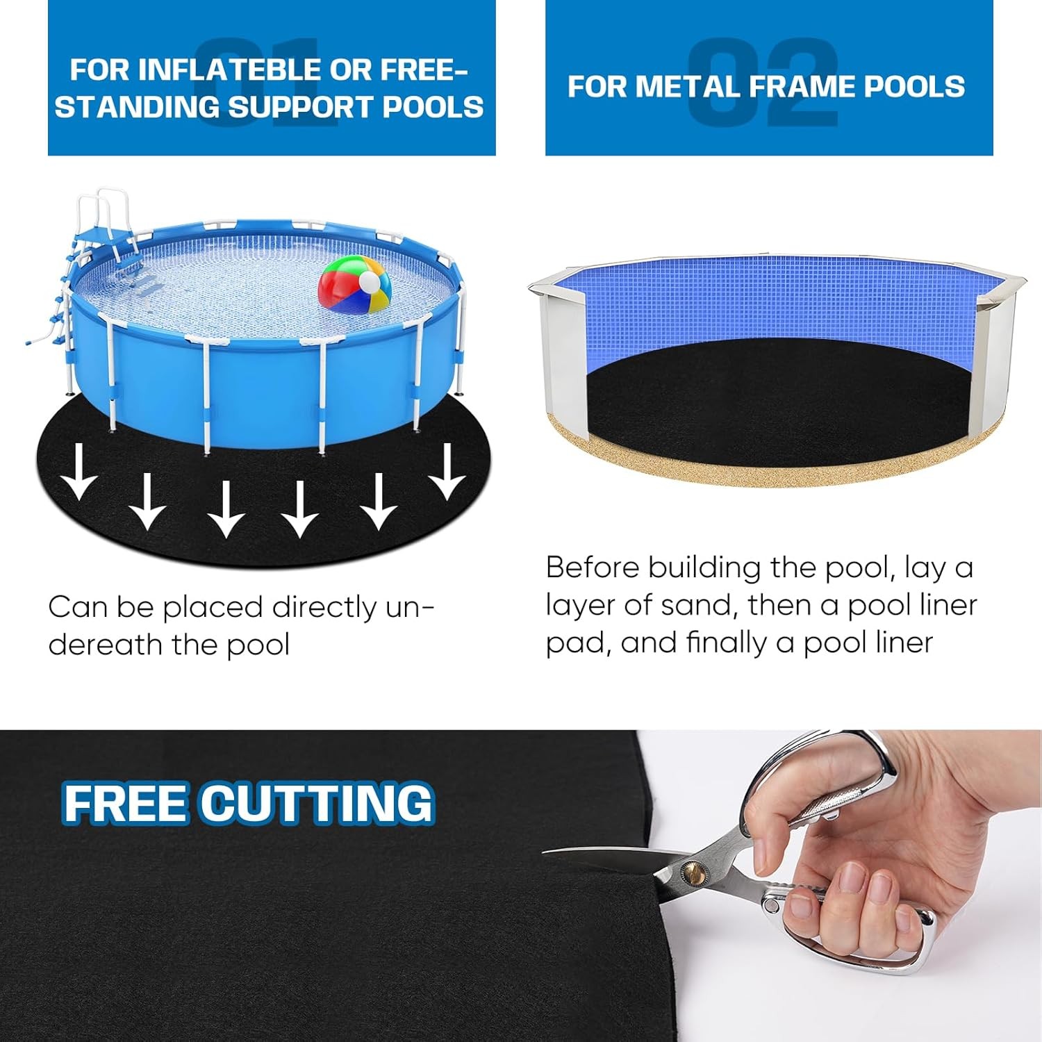 This pool liner pad is a total game-changer! The thick, durable felt provides excellent cushioning and protection against rocks, roots, and sharp objects. Installation was super easy—it creates a perfectly smooth base that keeps my pool liner safe from punctures and abrasions. The material feels high-quality and strong enough to last through multiple seasons. No more worrying about uneven ground or rough surfaces damaging my pool. Absolutely worth every penny for the extra protection and peace of mind it provides!