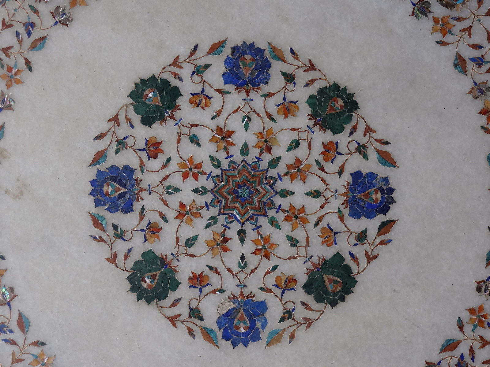 What is Inlay Art? One of the most attractive work of art that comes from marble is"Marble Inlay" work. It is the same work that adorns the Taj Mahal and other Mughal monuments. It is a closely protected traditional art and only a few expert exponents are available today. The delicate process involves cutting and engraving marble shapes manually. To start with, a predefined pattern e.g., floral design or geometrical design is engraved on the marble slab. Small pieces of marble of different shades are cut delicately to fit in these grooves precisely. These small pieces are then slipped in the grooves. Apart from marble, many other materials can also be used. History Of Inlay Art Inlay work on delicate precious stone began in the workshops of Florence in Italy around the end of the 16th century. This was known as PIETRA DURA.(Pietra= Stone, Dura= Hard) The Italians had created a classic artistic form and held a monopoly over it. From 1630 onward pietra dura appeared on movable, small objects as decorative panels, with bird and flower motifs, suitable for cabinet fronts and table tops. Some of these soon reached the Mughals in the form of presents. Of all the Mughal Emperors, Shah Jahan was the greatest patron of architecture in India. For him no amount of money or time was too much to create enduring, everlasting architectural beauty and through it be remembered always. It is in his buildings that one feels most compelled to make the connection between Mughal art and pietra dura. The Taj Mahal, the cenotaphs of the Emperor and his wife, the main floor and the surrounding marble railings bear very close resemblances to the pietra dura form. Process of Marble Inlay Art Master Craftsman carefully plans a design, which is etched lightly into the marble surface and later scored out with an iron chisel. Many of the tools of the trade are basically the same as those used by the Mughals hundreds of years ago. He then decides on the colour scheme depending on the requirements of piece being created. Semi-precious stones and gems are expertly chosen to give just the right graduation in colour and shade for the overall radiance of the pattern. They are shaped and polished by means of an emery wheel. Sometimes heat treatment is applied to certain stones to get a shading effect. The effort involved in making just one single flower can often take days of work, depending on the detail; it is not unusual to be designed from hundreds of different slices of stone. There are many varieties of coloured stone available for utilisation in marble inlay work: malachite, cornelian, jasper, mother of pearl, abalone shell, lapis lazuli, agnate, coral, turquoise and tiger eye to name just a few. The grooves are filled with their precisely corresponding shapes of coloured stone and secured in place with a white putty made from oil, and wax. Once the design is completely dry, the piece is polished with a mixture of sand, water and emery paper to give a shiny smooth finish. Note:- Customs Duty and other duties levies in destinations country are responsibility of the buyer