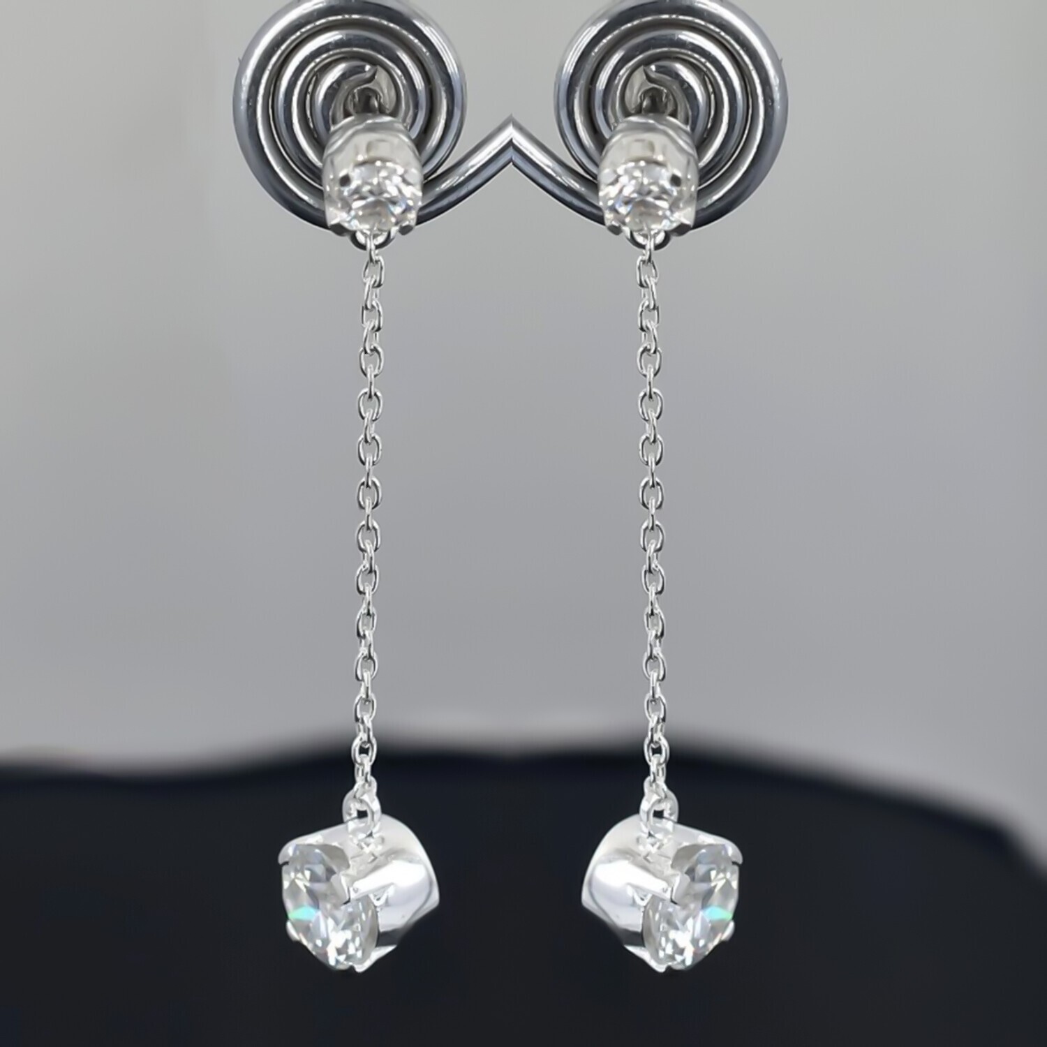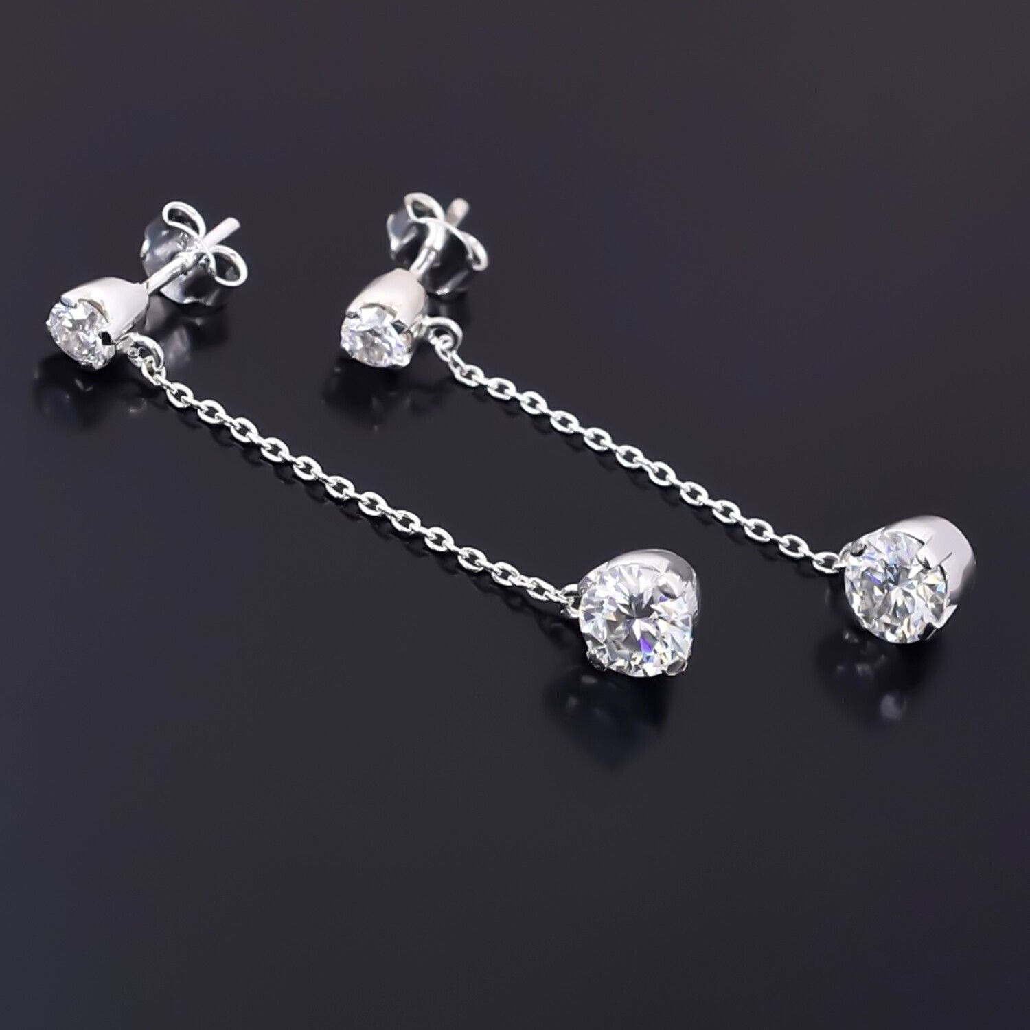 $ 72.124 Ct Certified White Diamond Solitaire Dangler Earrings In 925 Sterling Silver