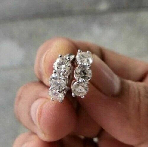 $ 13.891ct Moissanite Stud Earrings in Sterling Silver & White Gold Plated with Certificate