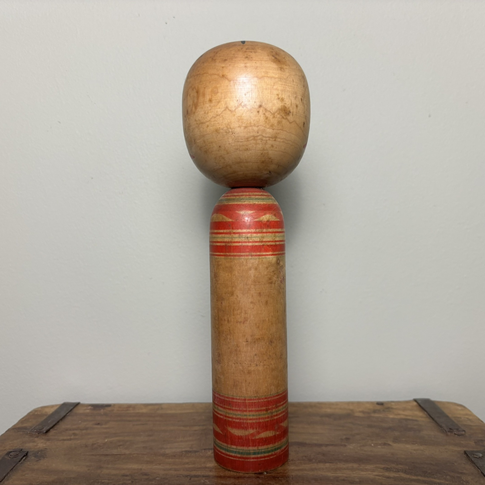 Japanese Kokeshi Doll A Japanese Kokeshi doll that stands approximately 21.5cm tall. This genuine piece of Japanese culture is an interesting objet d'art. History: Kokeshi dolls are Japanese wooden dolls traditionally made for children. It is said that Kokeshi were originally sold to visitors to hot springs in the Tohoku region of Japan during the late Edo period (1600-1868), to supplement business and keep workers' hands busy during the winter months. Over the years they have become increasingly popular worldwide, especially amongst shinnichi (Japanophiles) and collectors. Interesting fact: These dolls are the inspiration behind the Nintendo Mii characters. Please study the photos as they show the condition of the doll. Please note: These Kokeshi dolls are also listed on our own website (Rustique Living) and available in our shop. Therefore this listing may end suddenly if sold through there. Please study the photos as they form part of the description. Free U.K. delivery via Royal Mail / ParcelForce. See our other listings for more Kokeshi's and much more!