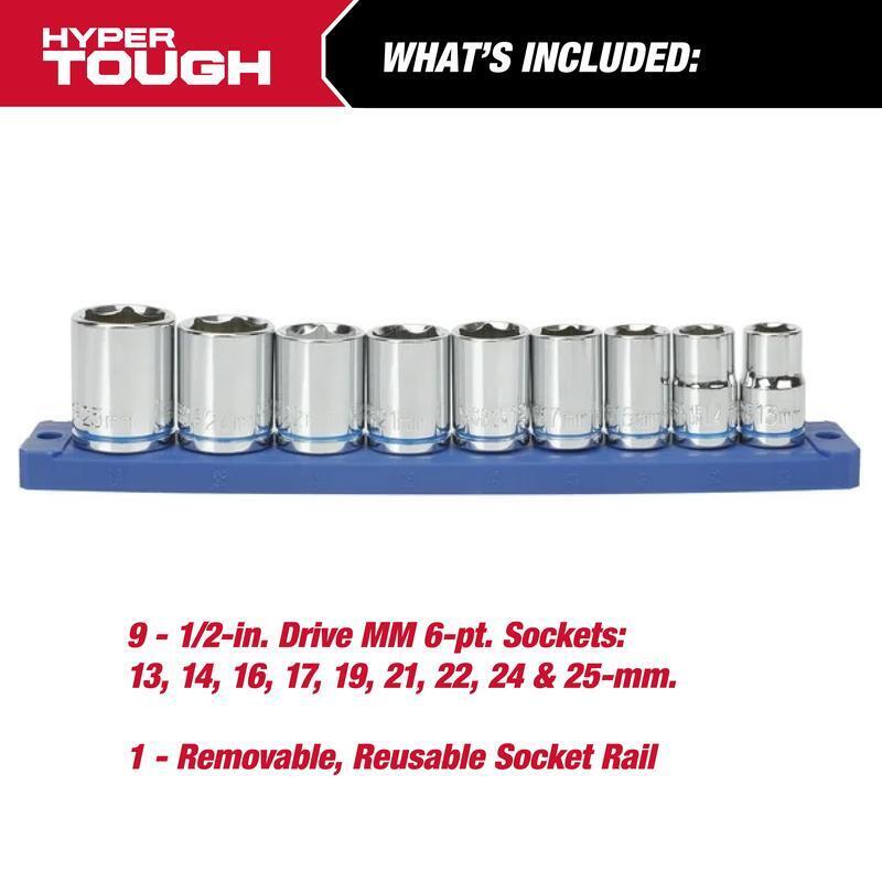 Steel Security Safe Electronic Keypad Lock Box Cash Jewelry Documents Home Use 70.01 USD 73.7 USD Free shipping 5% off 10 Piece 1/2 Drive Deep Universal Impact Socket Set Metric CrMo Steel Durable US 92.12 USD 96.97 USD Free shipping 5% off Revolving Spice Rack 16 Jar Set W/ Lift Pour Caps & 5 Year Free Refills New 50.63 USD 53.29 USD Free shipping 5% off Iced Tea Maker Tritan Plastic Pitcher Leak Proof Airtight Reusable Filter New 46.6 USD 49.05 USD Free shipping 5% off Portable Greenhouse Plants Indoor Outdoor Growing Easy Access Zippered Windows 104.6 USD 110.11 USD Free shipping 5% off Coffee Cup Condiment Organizer Station Countertop Caddy Kitchen Office Storage 61.74 USD 64.99 USD Free shipping 5% off Wet Dry Utility Vacuum 2 Peak HP Portable Blower W/ 13 Accessories 2.5 Gallon US 93.85 USD 98.79 USD Free shipping 5% off Wi-Fi Programmable Thermostat 7-Day Energy Star Smart Home C-Wire Required New 74.09 USD 77.99 USD Free shipping 5% off 50 Gallon Eco Rain Barrel Recycled Plastic Water Collection UV Resistant Outdoor 97.57 USD 102.7 USD Free shipping 5% off French Press Coffee Maker Borosilicate Glass Stainless Steel Eco-Friendly Brew 49.34 USD 51.94 USD Free shipping 5% off Centrifugal Air Mover 925 CFM Blower Carpet Dryer Floor Fan Water Restoration US 101.96 USD 107.33 USD Free shipping 5% off Interlocking Tool Case Stackable Organizer Efficient Transport & Protection New 88.31 USD 92.96 USD Free shipping 5% off Upgrade your toolkit with the Hyper Tough 21-Piece 1/2-inch Drive Ratchet and Socket Set. Designed for both DIY enthusiasts and professionals, this set combines durability and convenience. Each socket is crafted from strong chrome vanadium steel and color-coded for easy identification. The 72-tooth reversible pear head ratchet ensures precision with a 5-degree arc swing, perfect for tight spaces. The set includes both SAE and Metric sockets, along with removable, reusable socket rails for effortless organization. With Hyper Tough, you’ll tackle any task with confidence and efficiency. HT 21-Piece 1/2-inch Drive Socket Set Made from Cr-V steel for strength and durability Color-coded sockets for easy size identification Includes 1 reversible pear head ratchet with 72 teeth Includes 9 SAE sockets: 1/2, 9/16, 5/8, 11/16, 3/4, 13/16, 7/8, 15/16, and 1 inch Includes 9 Metric sockets: 13, 14, 16, 17, 19, 21, 22, 24, and 25 mm Comes with 2 removable, reusable socket rails for organized storage You may also like 3 Pack Rectangular Open Hamper Plastic Laundry Basket W/ Ventilation Handles New 29.53 USD 31.08 USD Free shipping 5% off 72in Steel Garden Stakes Pack of 25 Durable Plant Supports Tomato Stakes New 74.09 USD 77.99 USD Free shipping 5% off 5 Tier Adjustable Corner Shower Caddy Organizer W/ Hooks Rustproof Tension Pole 45.69 USD 48.09 USD Free shipping 5% off All Natural Quick Lighting Fire Starters Tumbleweeds 16 Pack Odorless Easy Use 8.79 USD 9.25 USD Free shipping 5% off Holy Garlic All Purpose Seasoning BBQ Rub Mixed Spices Meat Veggies Grill New 8.45 USD 8.9 USD Free shipping 5% off Heavy Duty 6 Inch Caster Wheel Set 4 Rubber Tread Swivel Fixed Casters New 89.9 USD 94.63 USD Free shipping 5% off Stainless Steel Corner Shower Caddy Adjustable Tension Pole Organizer Rust-Proof 49.39 USD 51.99 USD Free shipping 5% off Endoscope Camera W/ Light Automotive Inspection Waterproof 16.5FT Borescope New 52.6 USD 55.37 USD Free shipping 5% off 1/2in x 50ft Air Hose Heavy Duty Lightweight Hybrid Polymer Kink Free 300 PSI US 55.66 USD 58.59 USD Free shipping 5% off CD MP3 Boombox Bluetooth AM FM Radio USB Aux Input Portable Stereo Player 46.92 USD 49.39 USD Free shipping 5% off 30 Drawer Small Parts Organizer Desktop Wall Mount Storage Cabinet Tool Box New 31.79 USD 33.46 USD Free shipping 5% off 2000W Travel Voltage Converter Hair Dryer 220V to 110V USB Charging Adaptor 92.62 USD 97.49 USD Free shipping 5% off