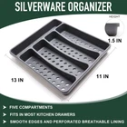 20 Pieces Silver Silverware Set For 4: This cutlery set contains 4 dinner forks, 4 salad forks, 4 dinner spoons, 4 dessert spoons and 4 dinner knives. Plus 1 long-lasting plastic non-slip organizer to store the black flatware set conveniently. Whether you use it in the comfort of your home or in a professional restaurant, this set is sure to impress your guests. High Quality Stainless Steel Flatware: This flatware set made of premium food-grade 18/0 stainless steel and great workmanship, nicely polished. This forks spoons and knives set wont bend, break, or rust resistant, preservative, anti-oxidation, strong and sturdy. If you are looking for an extra set of silverware for a dinner party or event, this is an excellent choice. Ergonomic Handle, Proper Weight: Each piece of the spoons and forks set ergonomic handle has a proper thickness without sharp edges. Its premium quality, ergonomic design, and stylish black finish make it a standout addition to any dining setting. Silverware Set With Organizer: The 12.8" x 11.3" cutlery tray still helps keep it all together and helps keep it organized so you can grab what you need when you need it. The silverware organizer is fairly thick plastic and the bottom of each silverware tray slot is a rubbery pad that's textured to help keep the silverware from slipping around too much. Perfect Gift: Ideal for catering, picnics, weddings, BBQ, holiday dinners, party serving, family reunions and everyday use. This tableware drawer set is a wonderful gift for Easter, housewarming, thanksgiving, christmas, birthday and more.