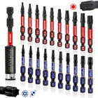 Star Screwdriver Bit: 21 Pieces mixed Torx Head Bits and Impact Magnetic Bit Holder, Impact Shock Absorbent Zone stands up to punishment from high-torque impact driver Package Include: 2 inches General Torx Bits (T7x1, T8 x1, T9x1, T10x1, T15x1, T20x1, T25x1, T27, T30x1,T40x1), 2inches Hollow Torx Bits (TT7x1, TT8 x1, TT9x1, TT10x1, TT15x1, TT20x1, TT25x1, TT27X1, TT30x1,TT40x1) Strong Magnetic Bit Set: Strong magnetic to pick up and hold screws easily with no slipping or stripping S2 Alloy Steel: it owns the features of high hardness and good toughness and resistance through strictly heat treatment, durable and suitable for any industrial use. In addition, magnetic star tips could conveniently attract screws Wide Used: Made to fit 1/4 In. hex impact drivers drill screw bit set is not only work with impact driver, but also perfect for any regular drill, electric and hand screwdrivers. This magnetic bit set are widely used in any wood working