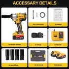 Features: Cordless Power Impact Wrench: This Impact Wrench has a powerful brushless motor, delivers a maximum torque of 680 N.M for fastening various applications. Brushless Motor: Brushless motor for higher performance and durability with increased efficiency and runtime, less noise and sparkles compared to brushed motor. 2PCS 3Ah Li-ion Batteries: Double batteries can last for 3-4 hours (each 1.5-2h).The impact wrench have stepless speed, you can adjust the speed at any time. Equipped with LED light, there is no hindrance to work in a dark environment. Forward / Reverse Button: Enables easily change rotating direction,can be used for tightening or loosening nuts and bolts. Robust design combines with aluminum alloy housing which prevents damage to the tool. Come with Wrench Sockets: Different sockets used to be tighten or loosen the nuts and bolts, suitable for automobile repair, engineering maintenance and other applications. Come with a Tool Box as well,easy to carry and storge. Humanized Design: Light weight and compact size suitable for use a variety of environments; Handle designed more comfortable and better grip. Drill Operation: First, turn the adjusting ring, predrill pilot holes to make dribing easier and to prevent splitting of the workpiece. Drilling in the wood: When Drillimh in wood, the best results are obtained with wood drills equipped with a guide screw. The guide screw makes drilling easier by pulling the bit into the workpiece. Drilling in metal: To Prevent the bit from slipping when strating a hole, make an indentation with a center-punch and hammer at the piint to be drilled. Drilling in stone: We provide drill bits that can be used with diamond heads, specifically for diamond heads, walls, tiles etc. Please add water during the drilling process to prevent overheating. Place the point of the bit in the indentation and start drilling. Use a Cutting lubricant when drilling metals. The exceptions are iron and brass which should be drilled dry. Specifications: Voltage: 21V Li-ion Battery Motor Type: Brushless Max. Torque: 680 N.m Wrench Chuck:1/2" Powered Source: Battery Powered Battery Capacity:3 Ah Li-Ion Battery Qty:2PCS Working Time: 1.5-2 hours(One Battery working time) Charging Time: 3-4 hours Material: Metal & Plastics Package Includes: 1 x Cordless Impact Wrench 2 x 3Ah Batteries 1 x Charger Accessories Battery Tips: Before first using,please make sure fully charge(3-4 hours) the battery to activate battery performance. Keep the battery away from water,do not pound the battery violently. If you encounter any problems during use, please let us know as oon as possible and our team will help you. On Oct 15, 2024 at 09:56:51 PDT, seller added the following information: On Oct 17, 2024 at 09:48:59 PDT, seller added the following information: